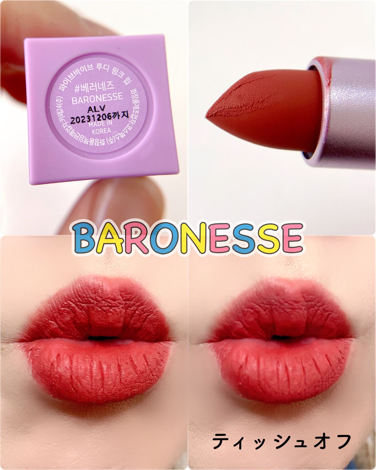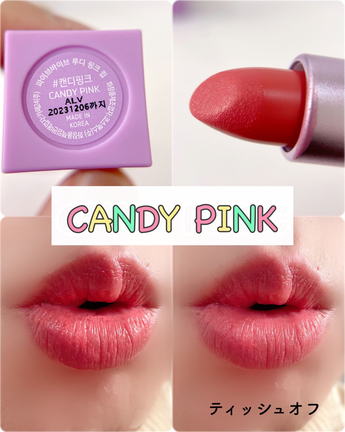 まず見た目が可愛くって、そして思ってたよりもかなりのミニサイズ・・⭕️ シアータイプのリップでラメがチラチラ見える控えめの発色のリップだょ✨✨ ティッシュオフしてもほんのり色が残ってくれて、ラメ感とツヤもほんのり残るのね・・✨✨ 程よい血色感が続いてくれて、つけ心地としては圧迫感が全くなくって、艶々瑞々しい感じ🥰 潤いもチャージできて、乾燥知らずなのもいい⭕️