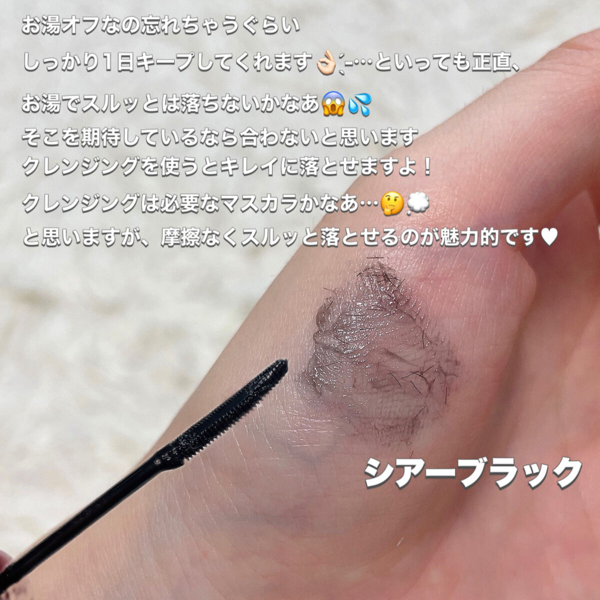 - ナチュラル仕上げ 透け感発色マスカラ ・簡単お湯オフ&ウォータープルーフ処方 ・コームタイプ 毛先までセパレートした、ナチュラルな仕上がりに ・ブラック&ブラウンファイバーinでボリュームアップ ・2種の美容液成分in(すべて保湿成分) パンテノール/オクタペプチド-2