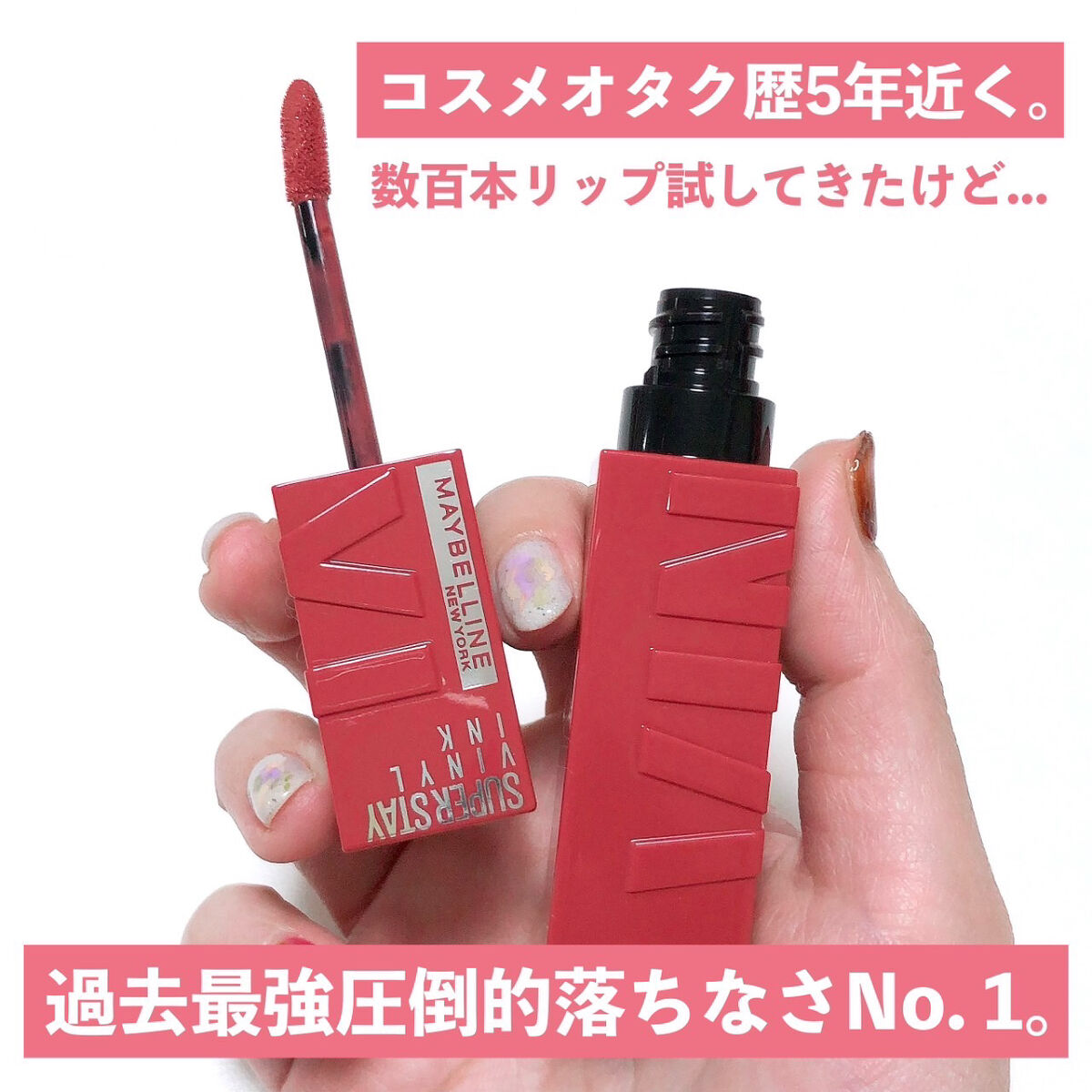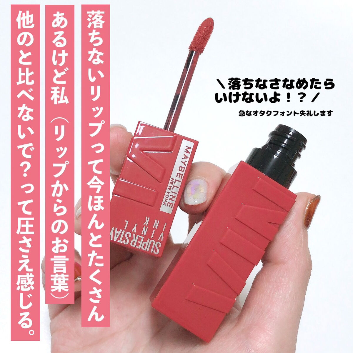 メイベリン⧉SUPERSTAYVINYLINK⧉130アプリケーターを振ってから、唇に塗布乾くと、落ちないリップに✼••••✼••••✼振って使うというのを知らずに、最初は降らずに使ってた!(笑)でも振らずに使っても、そう大差ない気がする。ア...