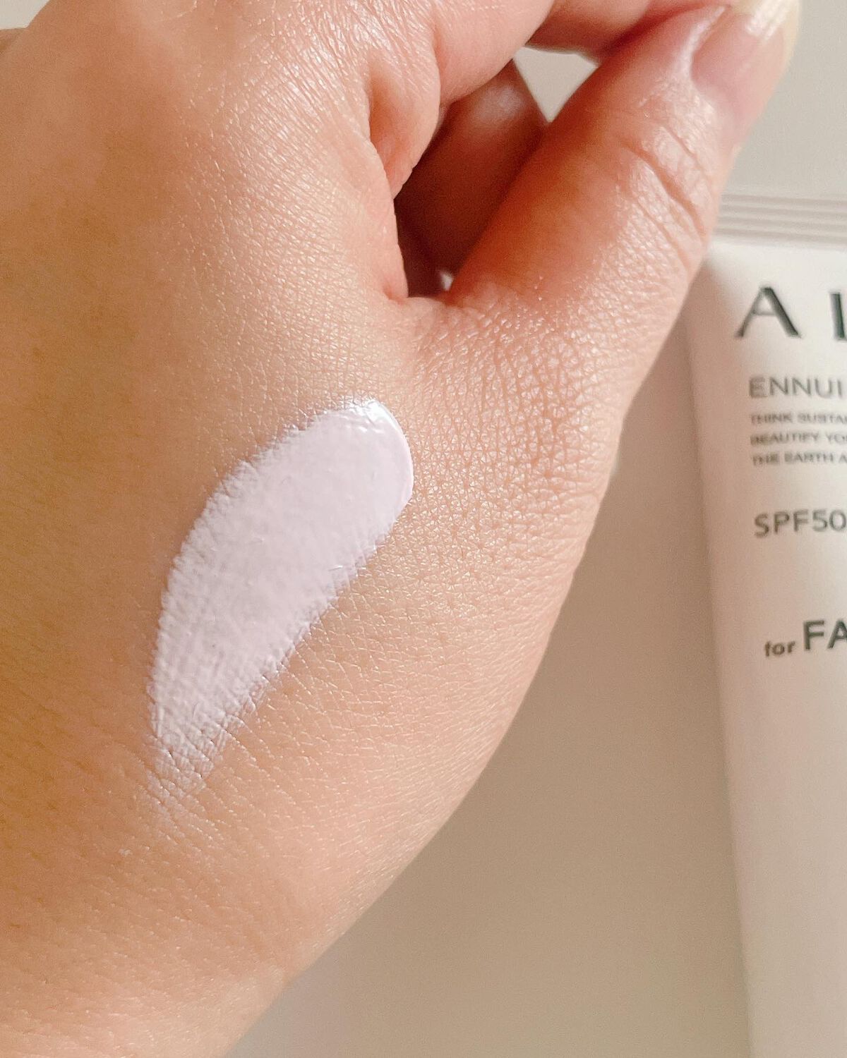 - 世界を想う 美しさつづく*1 日やけ止め おでかけも、マスクを外す機会も増える毎日に。 一部の国・地域・ビーチの規制に配慮した設計のビーチフレンドリー処方。 これ 1 本で、UV カット&顔色補整効果でクマ・くすみ・色ムラまでカバー! テカりにくく、くずれにくいノーファンデ UV*2 【ENNUI PURPLE】 くすみや毛穴をカバー 儚げな透明感のある顔印象続く 澄んだ気分を誘う 紫陽花しずく&セージの香り 【SUNNY APRICOT】 クマや毛穴をカバー いきいきとした血色感のある顔印象つづく 思わず出かけたくなる アプリコット&金木犀の香り 【SHERR BEIGE】 色ムラや毛穴をカバー 均一で抜け感のある顔印象つづく 自然で飾らない シトラスウッディ&パチュリの香り ●一部の国・地域・ビーチの規制に配慮した設計の「ビーチフレンドリー処方」 ●SPF50+・PA++++ ●汗・水 こすれに強く落ちにくい フリクションプルーフ・スーパーウォータープルーフ ●ベタつきにくい感触がつづく ●テカりにくくキレイな肌仕上がりがつづく ●環境に配慮した素材を使用したパッケージ採用 ●美容液成分(保湿)ヒアルロン酸Na配合 ●顔用 ●普段のメイククレンジングで落とせる ●マスク・タオル等につきにくい ●化粧下地効果 *1 スキンケア効果またはメイクアップ効果による肌仕上がりのこと *2 ファンデーション未使用時でも、自然なベースメイクが仕上がる日やけ止めのこと *3 チリ・ほこり・PM2.5・花粉等すべての微粒子汚れの付着を防ぐわけではありません 01:ENNUI PURPLE パープル 02:SUNNY APRICOT アプリコットピンク 03:SHEER BEIGE ミルキーベージュ