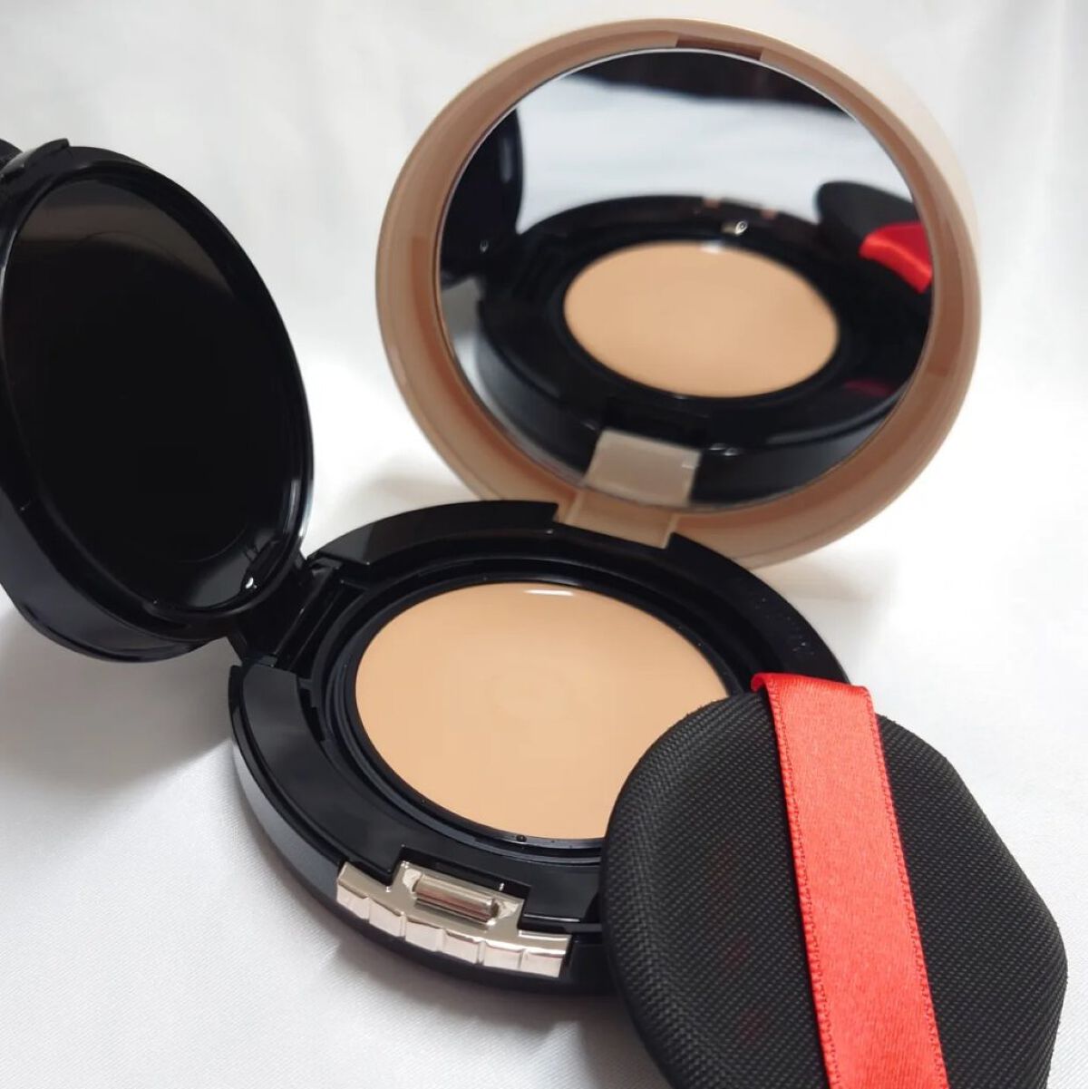 美容液リキッドファンデを丸ごと固めたジェリー状のクッションファンデ❣️ 固すぎずやわらかすぎずなテクスチャー! スポンジにとってポンポンすると少しひんやりみずみずしい感覚❣️ 毛穴カバーもしてくれて色ムラも目立たないのにツルンとする仕上がりです❣️ つけたてより時間経過したときの方がみずみずしさを感じます^ ^ 密着感もあるけど上からお粉を叩いた方がマスクにはつきずらいかな… スポンジの先が角張ってるので目のキワとか小鼻の脇とかも塗りやすいです❣️