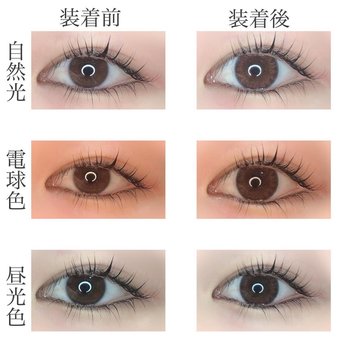くっきり細フチにビー玉を入れたようなツヤッツヤの白っぽグレー🩶 気持ち青さを感じるけど青みグレー苦手なわたしでも違和感なく付けれたよ😍 黒ベースだけどインナーにダークグレーが入ってるから真っ黒目にならず黒コンよりも軽くつけれる! 温もり感じるナチュラルブラウンが王道に盛れる👑💛 ブラウンの太フチがじんわりとしててぐりんぐりんな目にならず思ってたよりも、サイズ表記よりも自然に付けれた印象です🎃🤎
