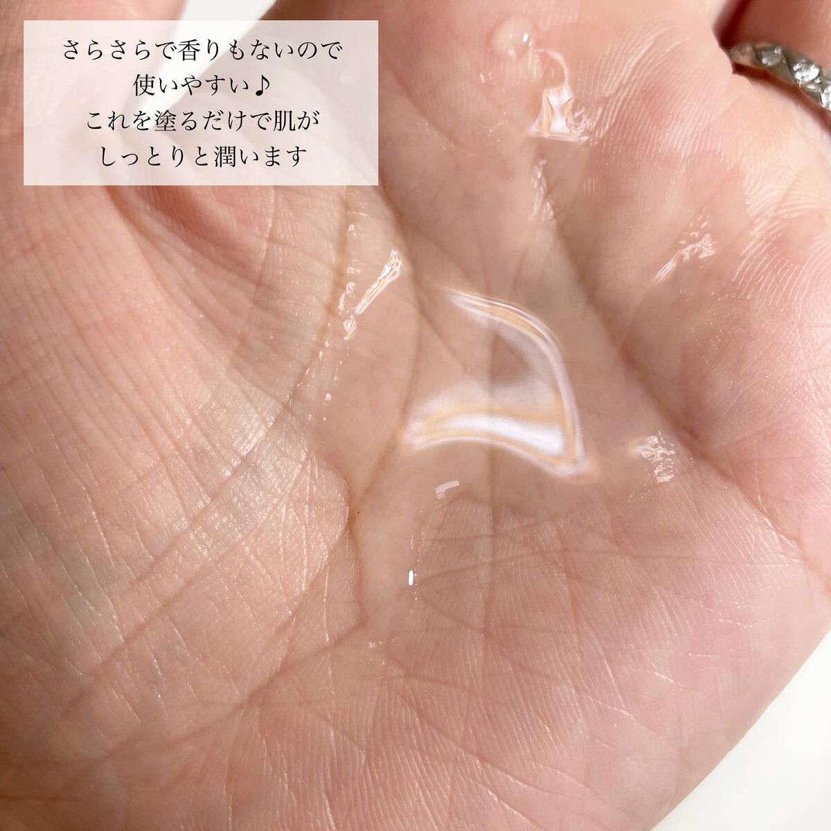 しゃばしゃばしていてサッパリした使い心地。肌に馴染みやすく、塗った後はサラッとします。 これをつけると次に使う化粧水がいつもより馴染みやすいように感じました。 サラッとしているから、夏でも使いやすそう🫶