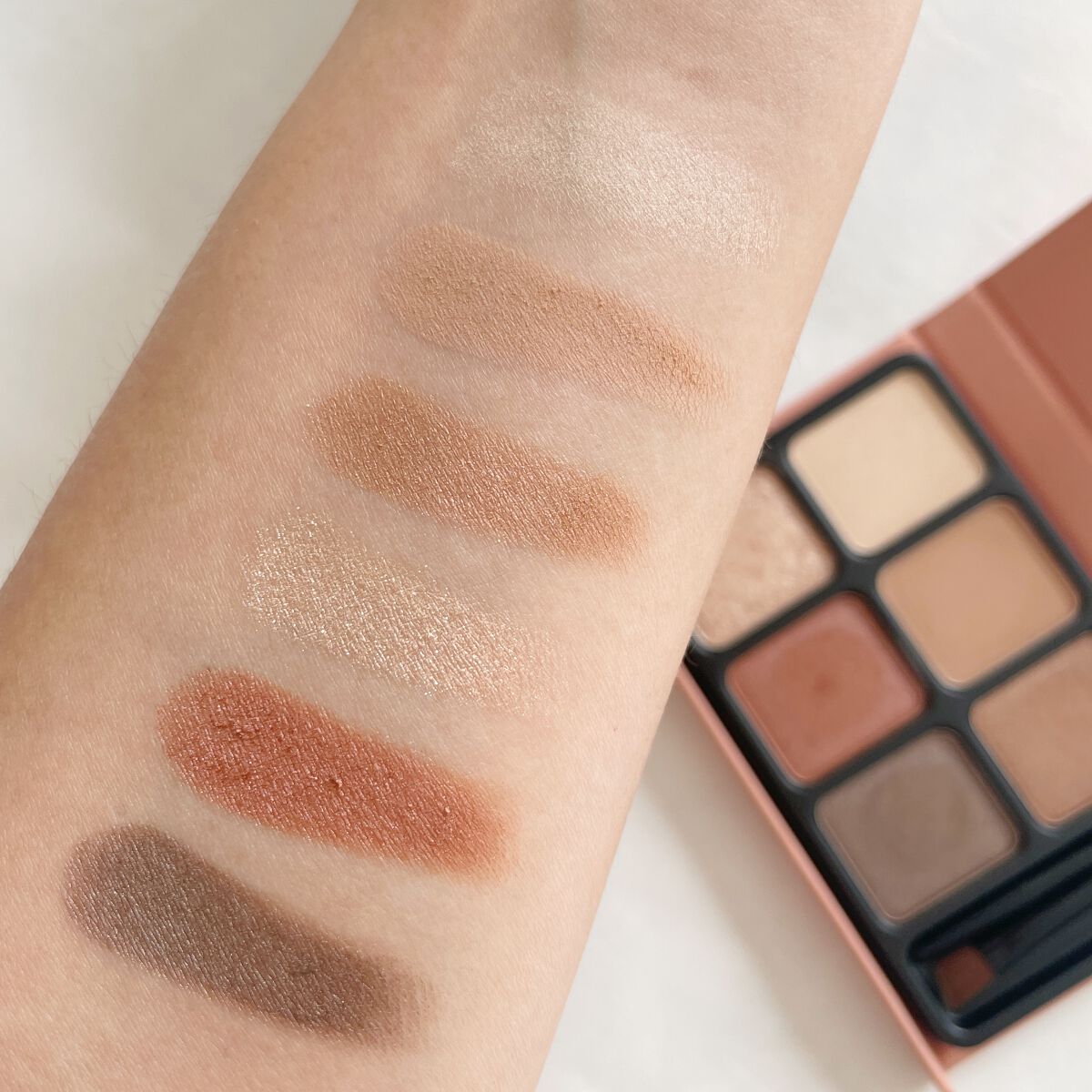 カラーはマットカラーばかりに1つだけグリッターっぽいラメカラーの計10色。 このパレットのカラーは“ムラ感”が出にくくてすごく使いやすい色味です。 クリオはすごく発色がいいので右下の締め色のブラウンも見た目だとちょっと明るめですがまぶたに乗せると深みがあってしっかり締まるカラーです。 マット系のカラーなので最後に他のアイシャドウのラメ感をプラスしても可愛いしマットのままでもまとまりが出てすごく綺麗に仕上がります。