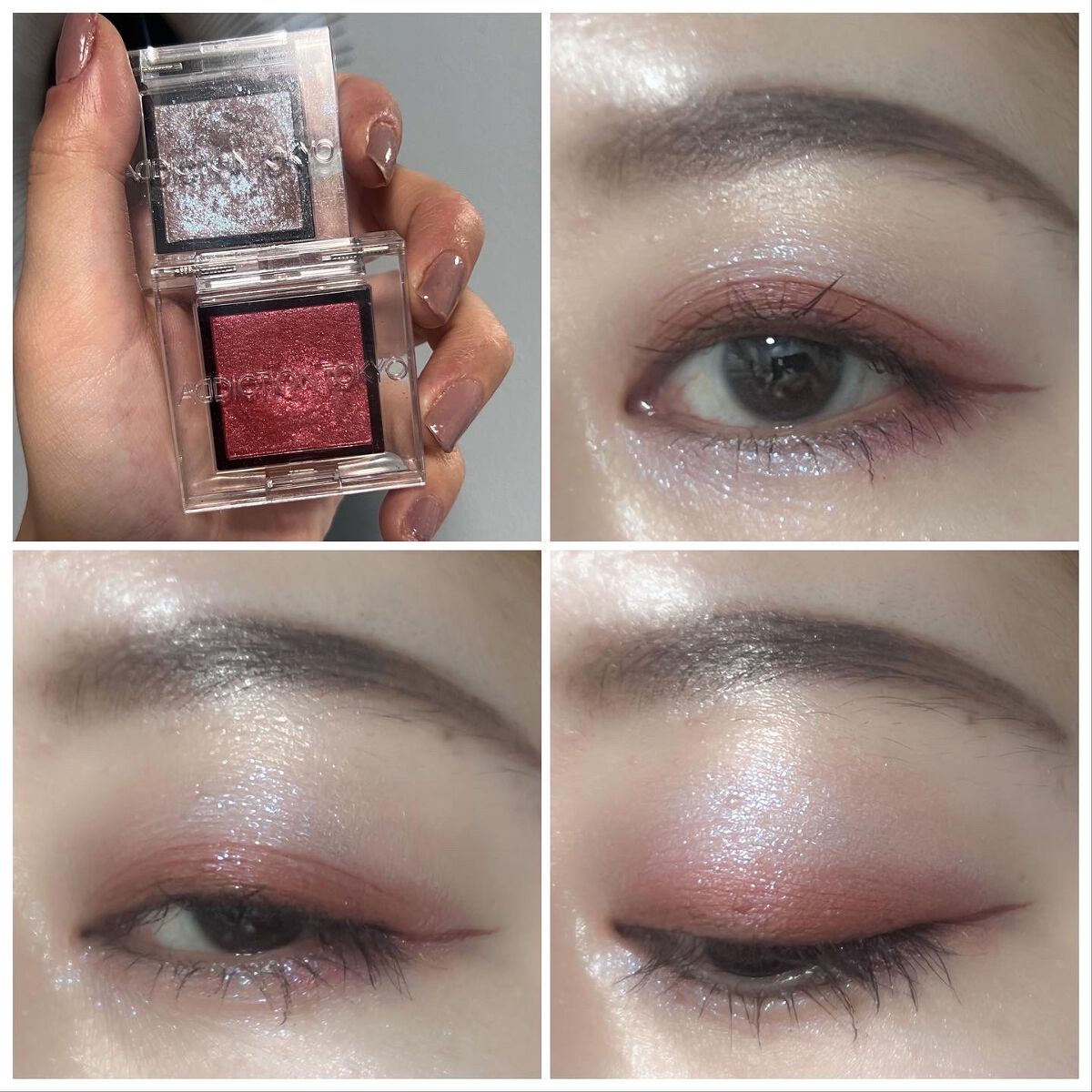 ボビイブラウンの名品ムーンストーンはベースがクリアなのでどんなアイシャドウにも合わせられるし上からトッピングするのにも向いています。 アディクションのマリアージュは2,200円でこの煌めき! 一番安いのに一番輝く、さすがです。 秋蛍は実はトッピングするとベースのシャドウを殺してしまうので目頭、下瞼などポイント使いかベースに使うのがおすすめです。