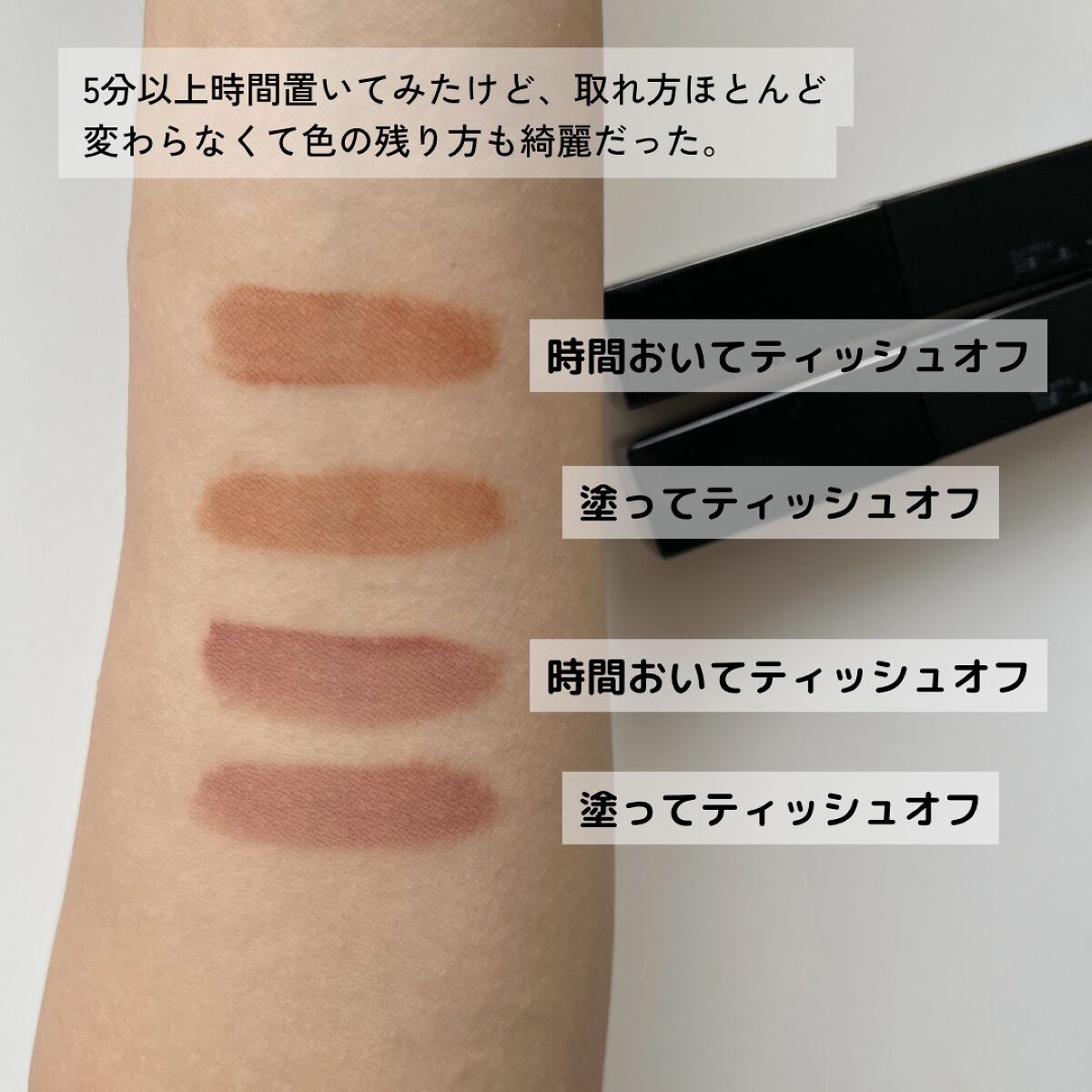 パケのデザインが可愛すぎます😍 マットインクは甘いバニラのような匂いでしたが ヴィニルインクは ローズのようなお花の匂いで マットインク同様に苦手な方も多いのかなと思います! チップの先端が細めでリップラインも取りやすく綺麗に塗れました◎ また、塗ってすぐティッシュオフと時間を置いてからティッシュオフしたのとでは、少し色の残り方に差が出ていました! 時間を置いていた方が色の取れにくさも実感できました! しかしこれだけ色が残ってくれるのは凄いです!! 水で擦ってみても落ちなかった、、、 石鹸でゴシゴシしても落ちない、、、 ツヤタイプもなかなか落ちにくいのでオフにはポイントメイクリムーバー必須です!