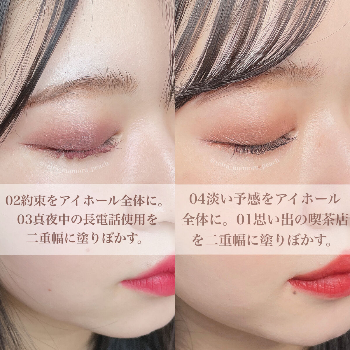 - <01 思い出の喫茶店> 水、BG、シリカ、(スチレン/アクリレーツ)コポリマー、エタノール、ステアリン酸PEG-40、フェノキシエタノール、キサンタンガム、デヒドロ酢酸Na、シメチコン、モモ葉エキス、ローズマリー葉エキス、ヒアルロン酸Na、ホウケイ酸(Ca/Al)、マイカ、酸化鉄、酸化チタン <02 約束> 水、BG、シリカ、(スチレン/アクリレーツ)コポリマー、エタノール、ステアリン酸PEG-40、フェノキシエタノール、キサンタンガム、デヒドロ酢酸Na、水酸化Al、シメチコン、モモ葉エキス、ローズマリー葉エキス、ヒアルロン酸Na、ホウケイ酸(Ca/Al)、マイカ、酸化チタン、酸化鉄 <03 真夜中の長電話> 水、BG、シリカ、(スチレン/アクリレーツ)コポリマー、エタノール、ステアリン酸PEG-40、フェノキシエタノール、キサンタンガム、デヒドロ酢酸Na、シメチコン、モモ葉エキス、ローズマリー葉エキス、ヒアルロン酸Na、ホウケイ酸(Ca/Al)、マイカ、酸化チタン、酸化鉄 <04 淡い予感> 水、BG、シリカ、(スチレン/アクリレーツ)コポリマー、エタノール、ステアリン酸PEG-40、フェノキシエタノール、キサンタンガム、デヒドロ酢酸Na、水酸化Al、シメチコン、モモ葉エキス、ローズマリー葉エキス、ヒアルロン酸Na、ホウケイ酸(Ca/Al)、マイカ、酸化チタン、酸化鉄 <06 強がり> 水、BG、シリカ、(スチレン/アクリレーツ)コポリマー、エタノール、ステアリン酸PEG-40、フェノキシエタノール、キサンタンガム、デヒドロ酢酸Na、クエン酸、シメチコン、水酸化Al、モモ葉エキス、ローズマリー葉エキス、ヒアルロン酸Na、ホウケイ酸(Ca/Al)、マイカ、酸化鉄、酸化チタン