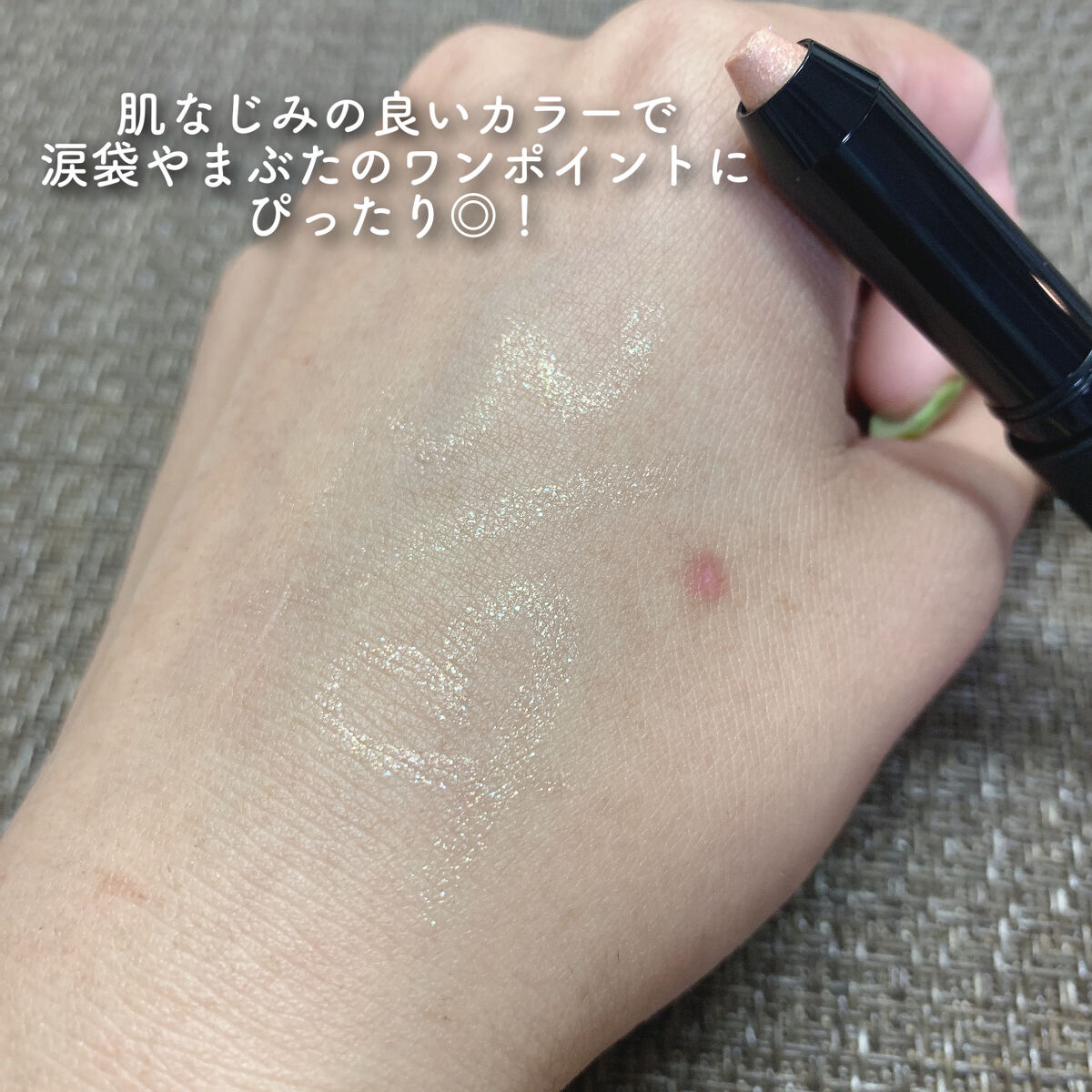 - 目のきわにひいてアイライナーとして使ったり、まぶたにぼかしてアイシャドウやハイライトとして使ったりとメイクやシーンに合わせて、自由自在に楽しめるマルチなグリッタースティック。水・汗・皮脂に強いWプルーフ*処方でこすれに強く、ラメ飛びしにくいので、涙袋メイクにも。細かいラメを採用することでザラつかず、肌あたりなめらかな描き心地。 * ウォータープルーフ、スマッジプルーフのこと。メーカー調べ。効果には個人差があります。