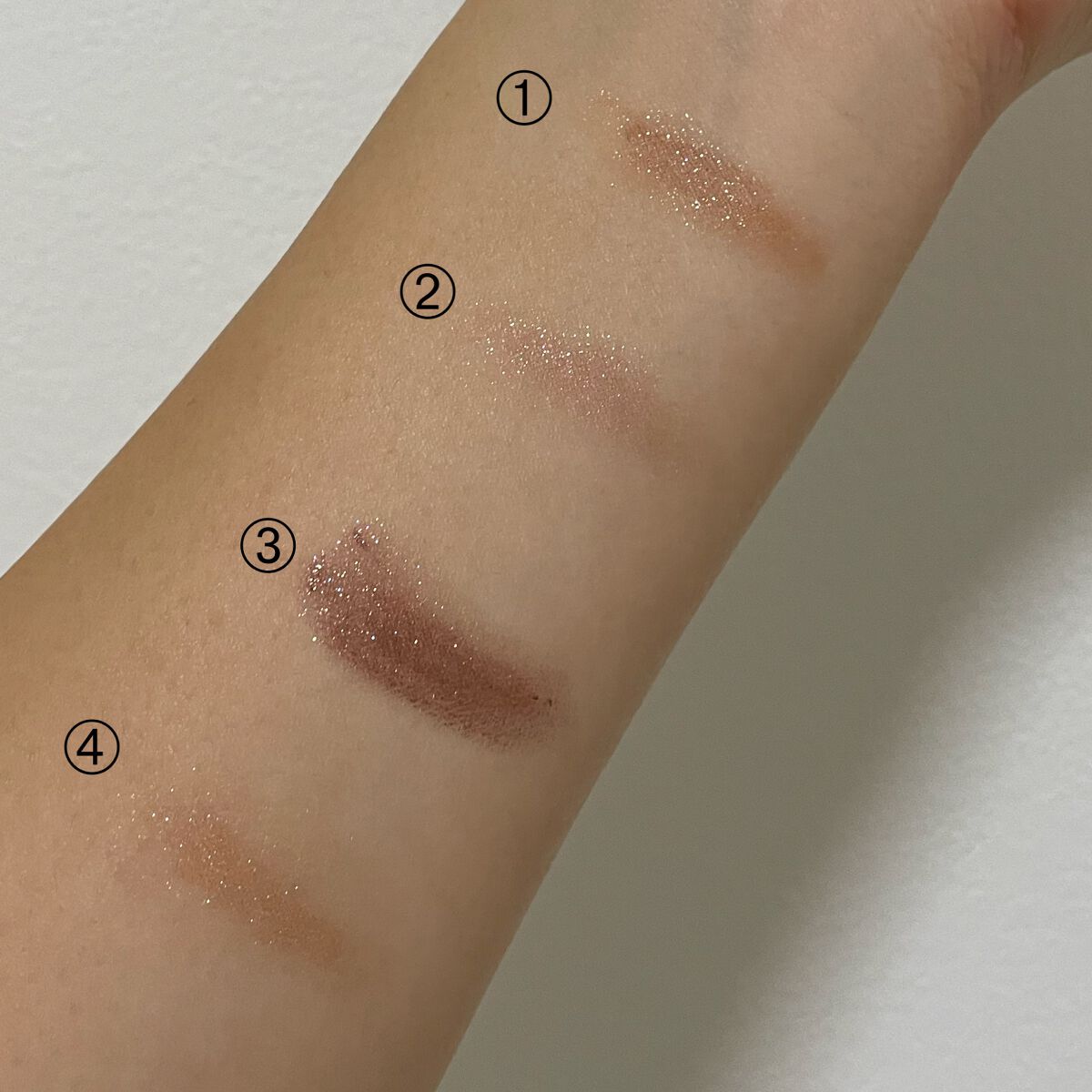 01 思い出の喫茶店オレンジ味の強い繊細なラメシャドウ🍊だけど少し落ち着いてもいるので、普段メイクや秋のメイクにおすすめです! 02 約束上品な薄ピンクのシャドウ🎀たぶんデートメイクでこのラメを使ったら可愛いんだろうなと思える色味😇 03 真夜中の長電話茶色味の強い赤茶のシャドウ🌰大人っぽい印象に仕上げたい時や、秋メイクにおすすめです! 04 淡い予感私的No.1シャドウ😍肌なじみが良く、単色として使いやすいし、ヘルシーな印象を与えられます🤭 このリキッドシャドウを使う時のポイントは、まぶたに置いた瞬間すぐにぼかすことです☝️ぼかさないとダマになってしまい、垢抜けない印象に🥲 あと、容器の持ち手の部分が大理石みたいなデザインになっててオシャレで、持ち運びも便利だと思いました☺️ 各色 748円(税込)でお財布にも優しい値段なのでぜひ皆さん買ってみてください💓