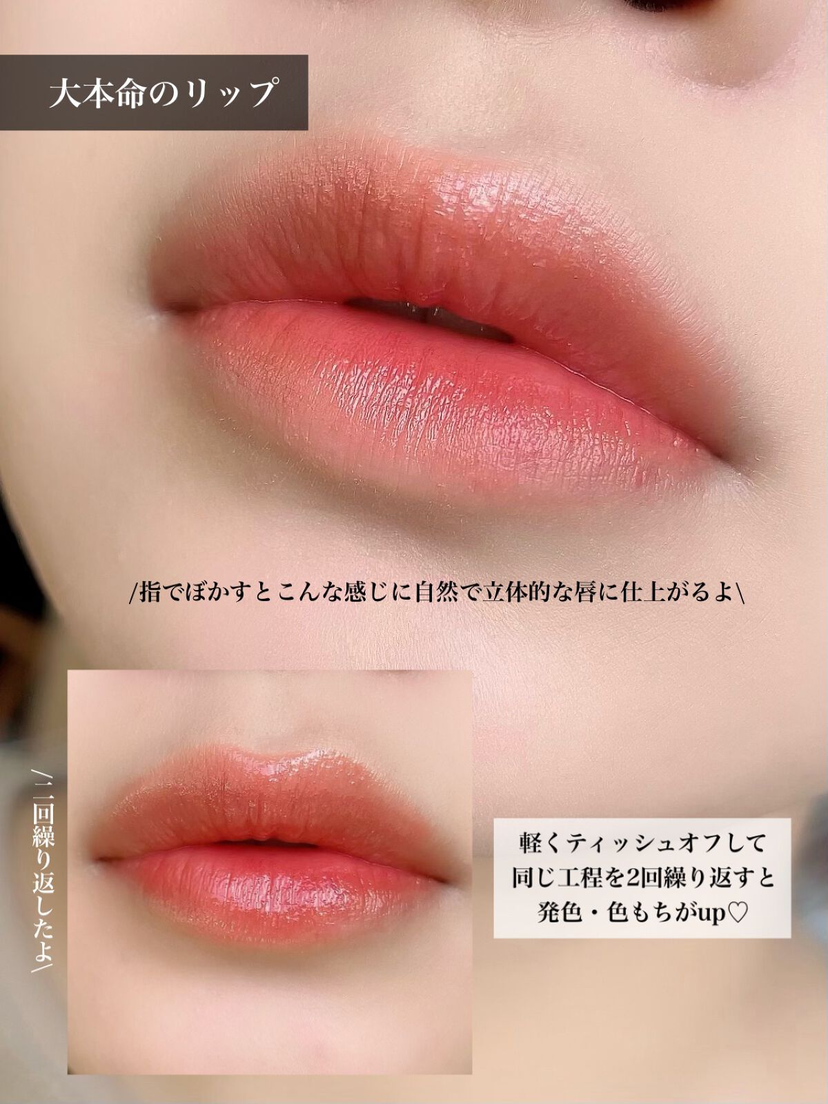 見た発色そのままのカラーを実現することができます💄 フワッとした不思議なテクスチャーですが、つけすぎると乾燥してしまうので注意です⚠️ リップラインも一度消しているので、オーバーリップも綺麗にやりやすくなります💖