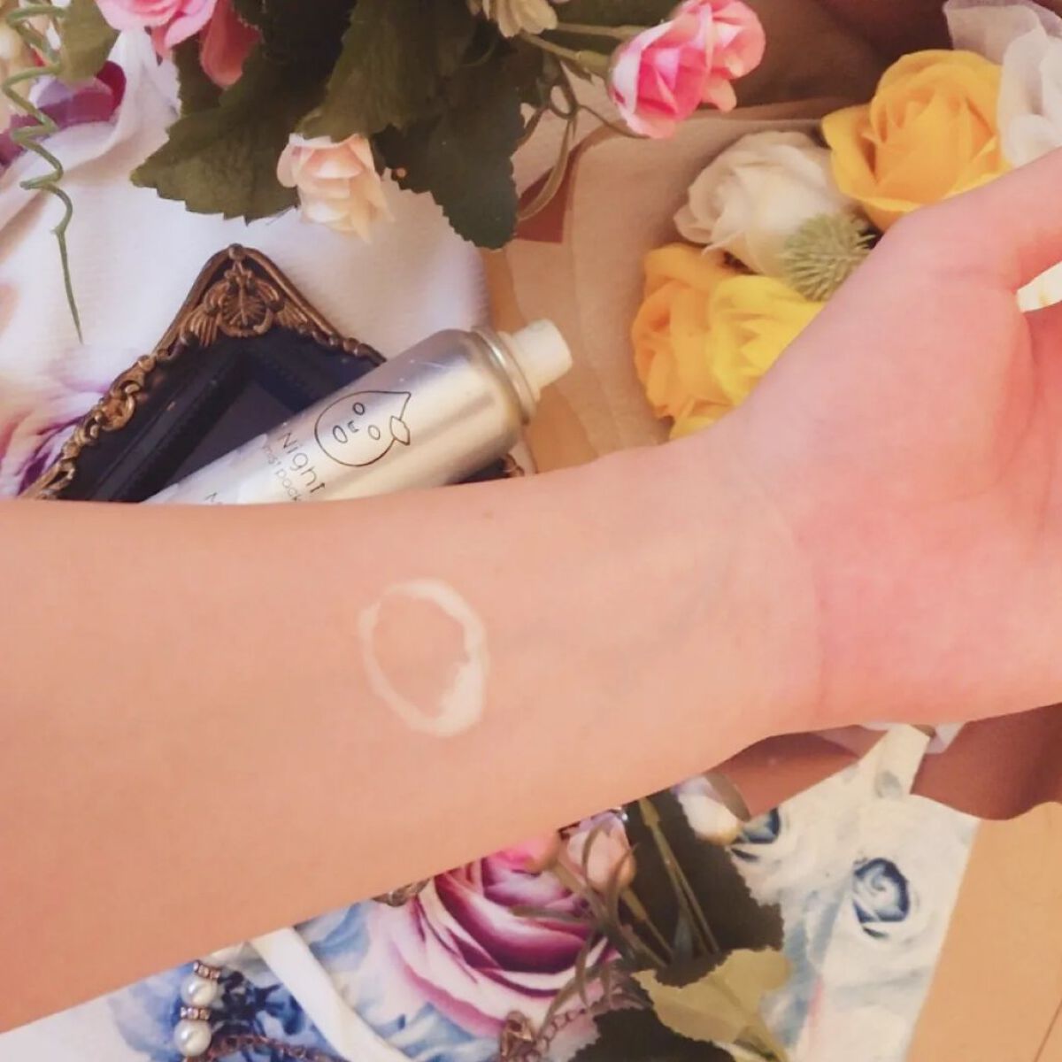 ナイトパック・日中の乾燥対策・洗顔後のうるおい補給3wayで使えるミスト状化粧水 肌から20cmほど離して、目を閉じて顔全体円を描くようにスプレーした後、手のひらでなじませて使います ひんやりと気持ちいいミストで手のひらでハンドプッシュするとモチモチ感もありつつ、しっとりします