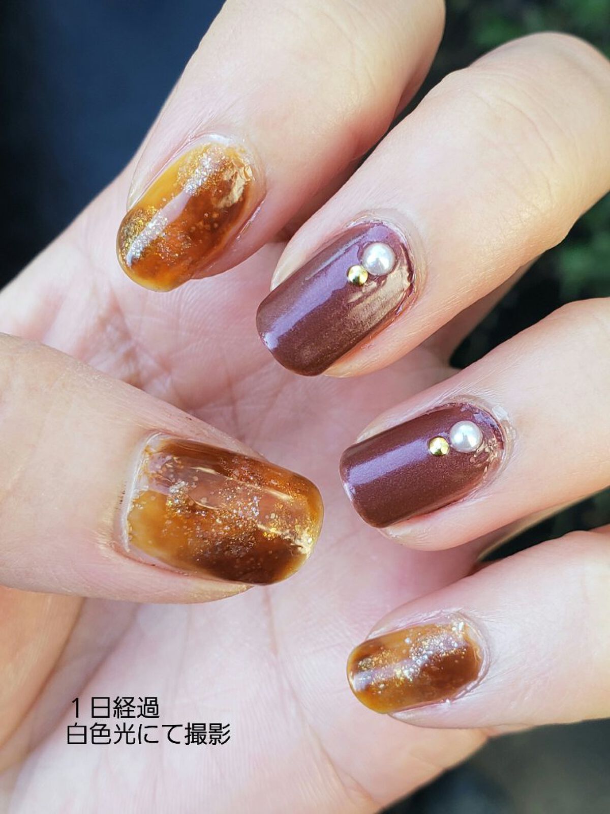 【べっ甲ネイルVol.3🍂】11月も半ば、秋ネイルを楽しめるのもあと少し、、またまたのべっこう×ボルドーネイルですが、少しやり方を変えて奥行きが出るようにしたので前回よりも少し天然石っぽくなった気がしています🤍今回はラメを閉じ込めてみました!...