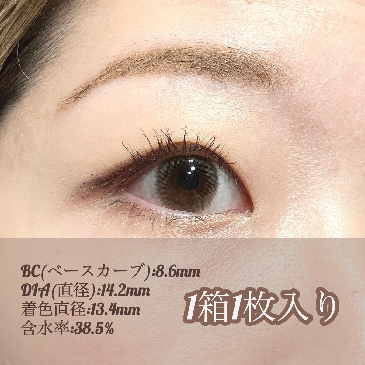 - ナチュラル、キュート、ハーフの3タイプ ナチュラルシリーズ:スリークブラウン・ダスティブラウン・シマーショコラ・スフレコーラル・ハニースキン・セピアミスト・ラスターキャメル・イノセントヘーゼル キュートシリーズ:スウィートティア・モダングランジ・シャイニーリッチ・スムースアーバン ハーフシリーズ:パールグレージュ・リュクスベージュ・シェイドオリーブ 瞳から自分らしさを彩ってほしいという想いから誕生しました。 時に裸眼のように無防備に、時にドラマティックで華やかに。 豊富なバリエーションでどんな瞬間も思い通り輝く瞳に・・。 DIA:14.5mm BC:8.7mm 中心厚:0.07mm( -3.00D ) 含水率:38.5%