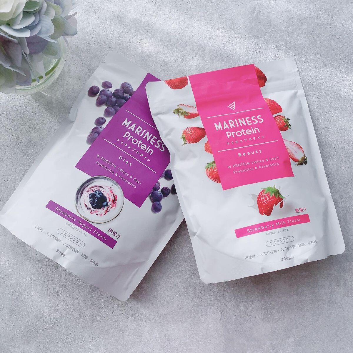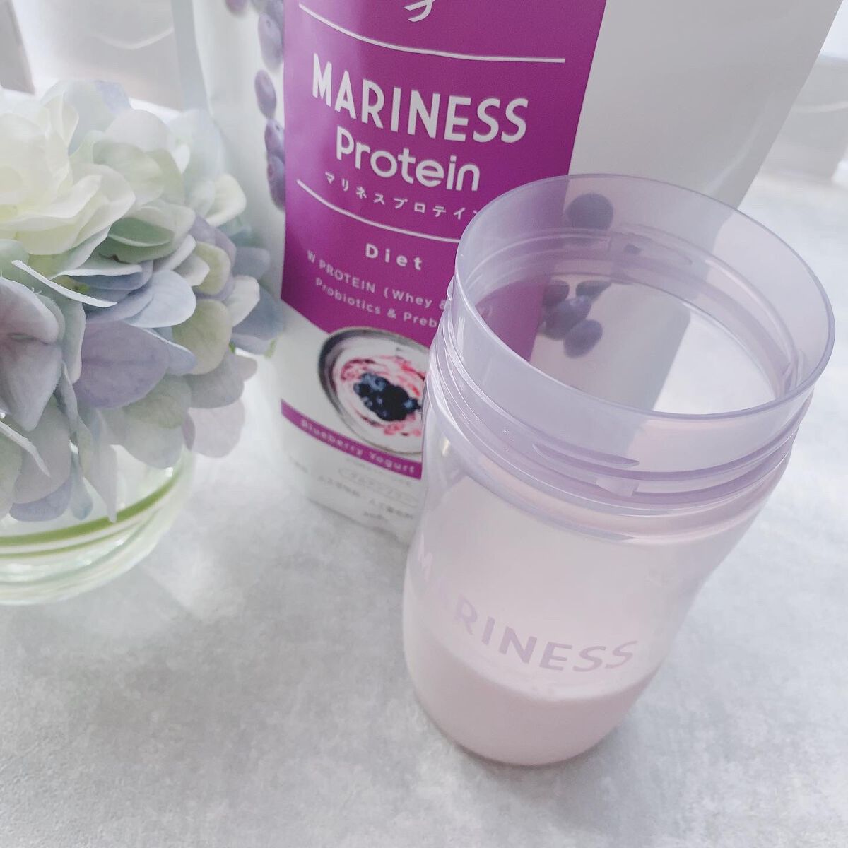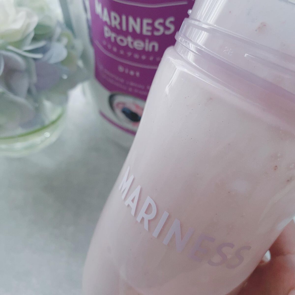 私の大好きなマリネスのプロテイン! プロテインはマリネス!な我が家は今までバナナ、チョコ、ブルーベリーヨーグルト、抹茶ラテ、ロイヤルミルクティー、黒ゴマきなこほぼ全制覇するんじゃないかくらいリピートしています🥰 甘みの中に、少し酸味も感じられるので甘ったるくなく、くどくないから飲みやすい🙆♀️ マリネスのいいところは溶けやすいこと!粉っぽさがなく良き◎腹持ちの良さも◎置き換えしたい人にもいい🙌
