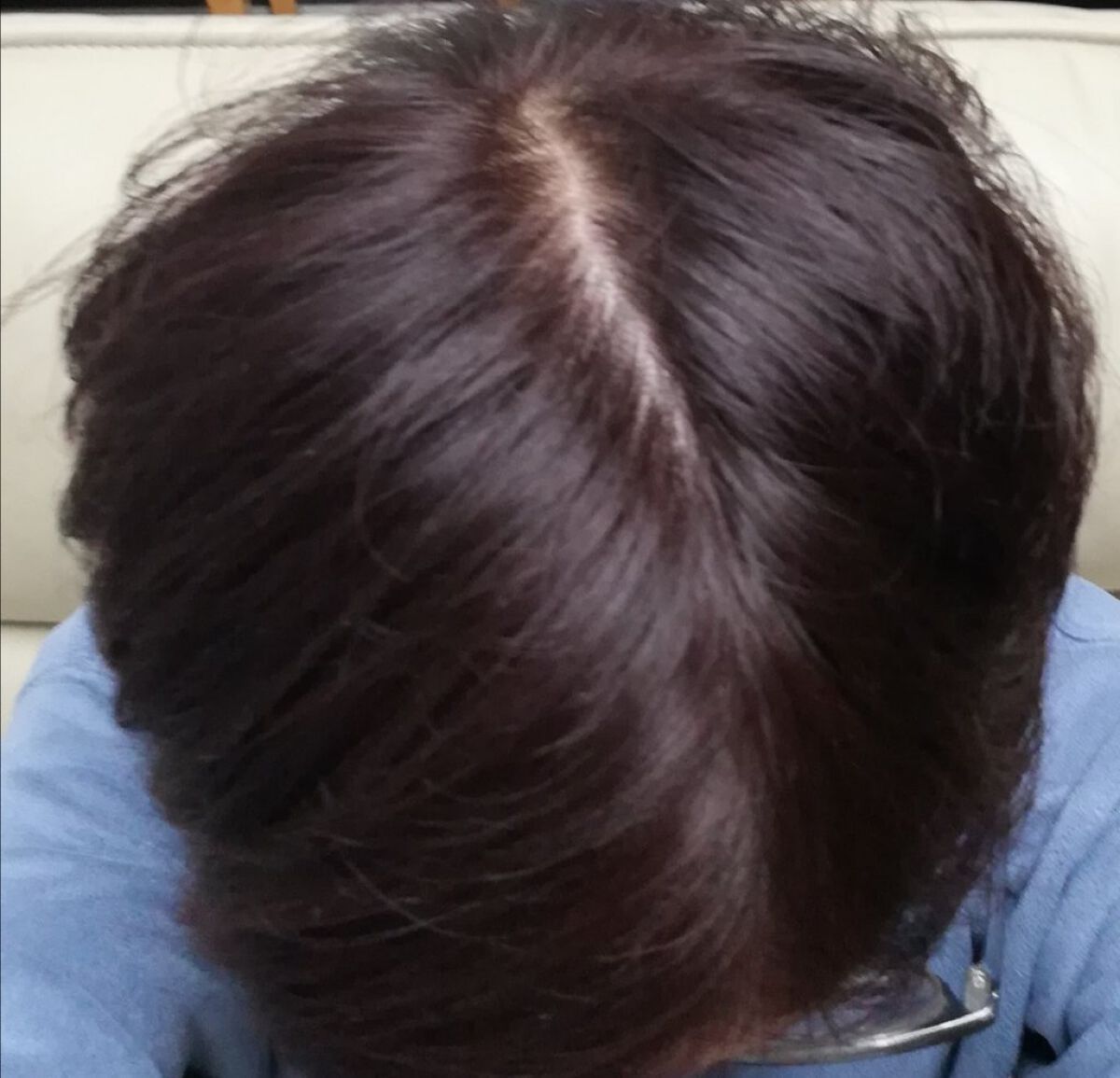 色落ちが早くって😅 暗い色にしても二週間くらいで抜けてくる😭 黒にしかみえないけど若干光あたるとちょっと紫がかってるかなって感じです 色落ちいつまで持つかなぁ。。 もう秋がやってくるから暗めにしちゃった🤭 子どもらは茶色がいいって言われる始末ですが(笑)😅