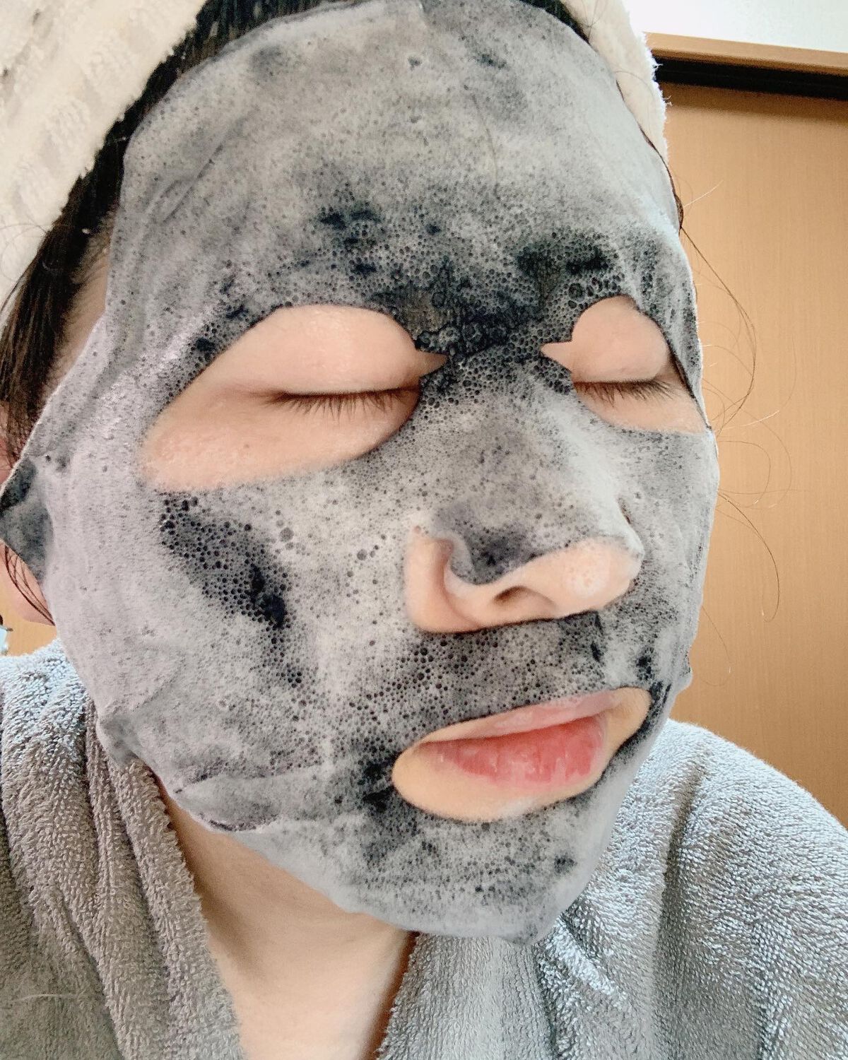 泡のパックが面白い🌟パックの時間をおいたら、洗い流すタイプよくパックを揉んでから使う顔に貼っているうちに手も泡だらけ顔に貼ると泡がどんどん増えて面白い🌟シートを顔にのせるだけで 皮脂汚れなどの吸着効果が高いチャコールバブル(竹炭泡)が発泡し毛...