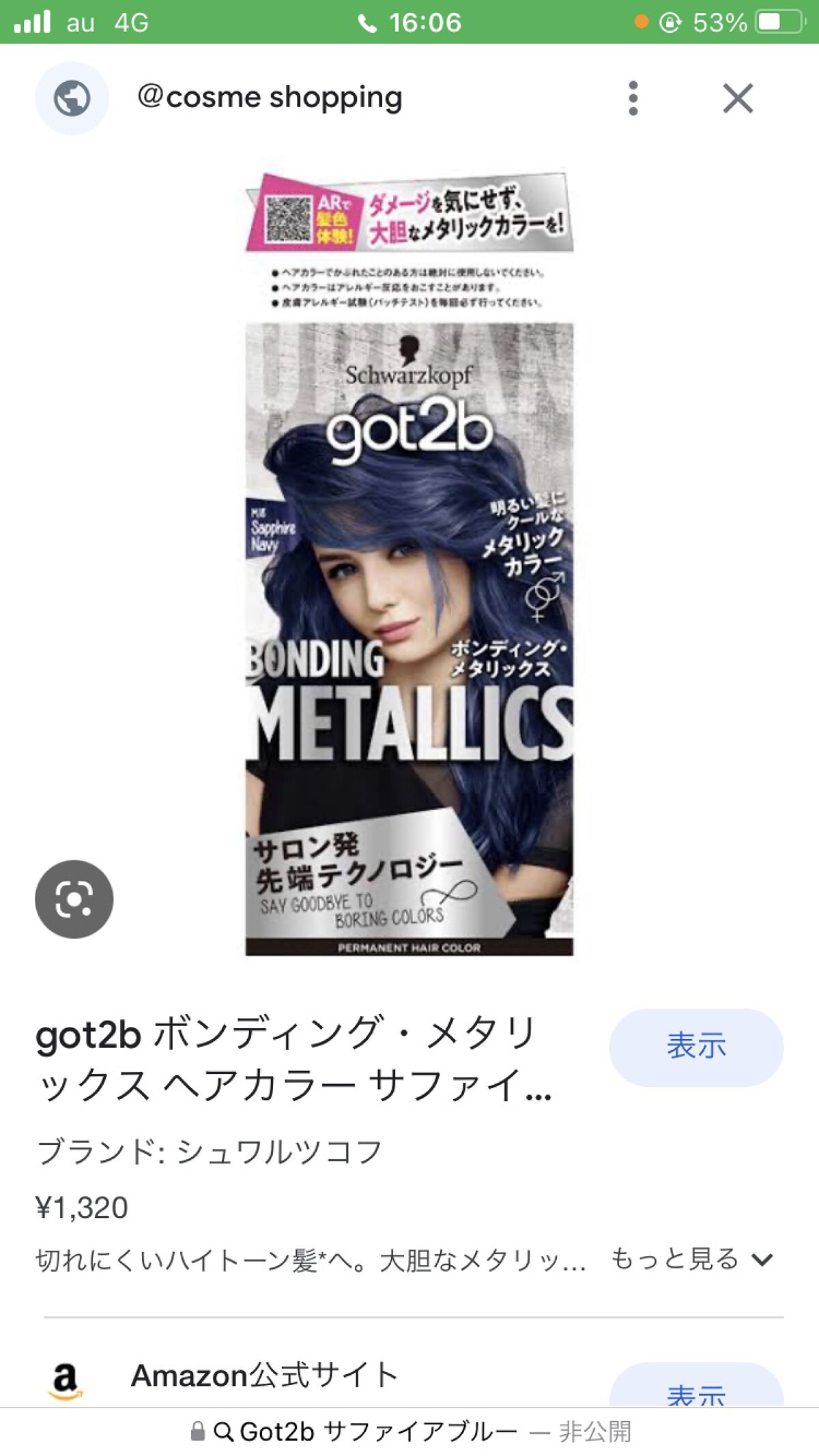 ボンディング・ブリーチを3回(根元は美容室でリタッチしてます)した髪に、ボンディング・メタリックスサファイアネイビーで染めました!パッケージ通りの髪色に染まってます!カラー前と比較して傷んだ感じもほとんどありませんでした🥰Ulikeのフィルタ...