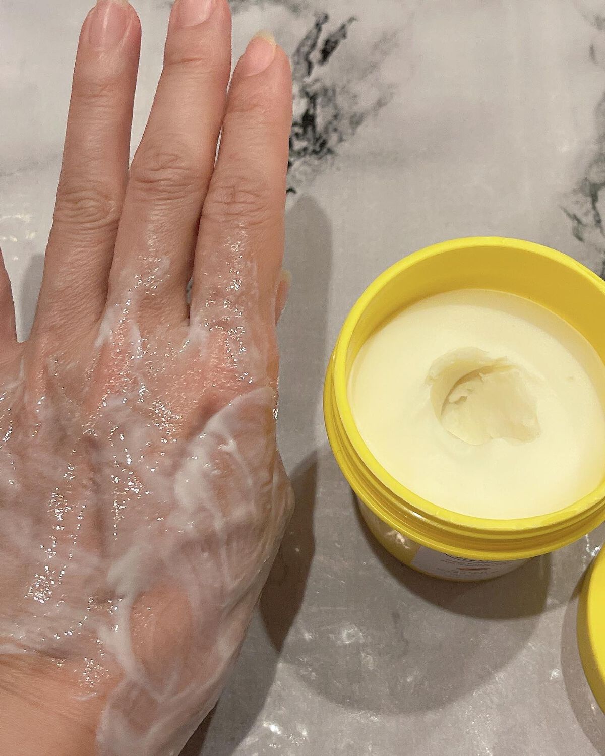 - バームtoフォームで一気に終わるスキップクレンジング。水分たっぷりの黄色のクレンジングバーム