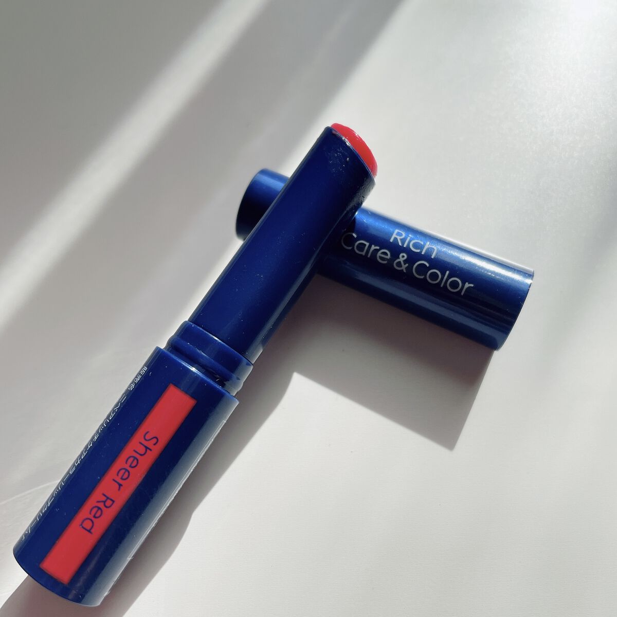 \638円で買える血色とうるおい/ニベアリッチケア&カラーリップシアーレッド/638円私はマツキヨで購入🛒鏡見ないで塗っても事故らないし、色づきも控えめだから塗り直ししてもそこまで派手な色にならないしめちゃくちゃ良い🙆♀️3回以上塗り直...
