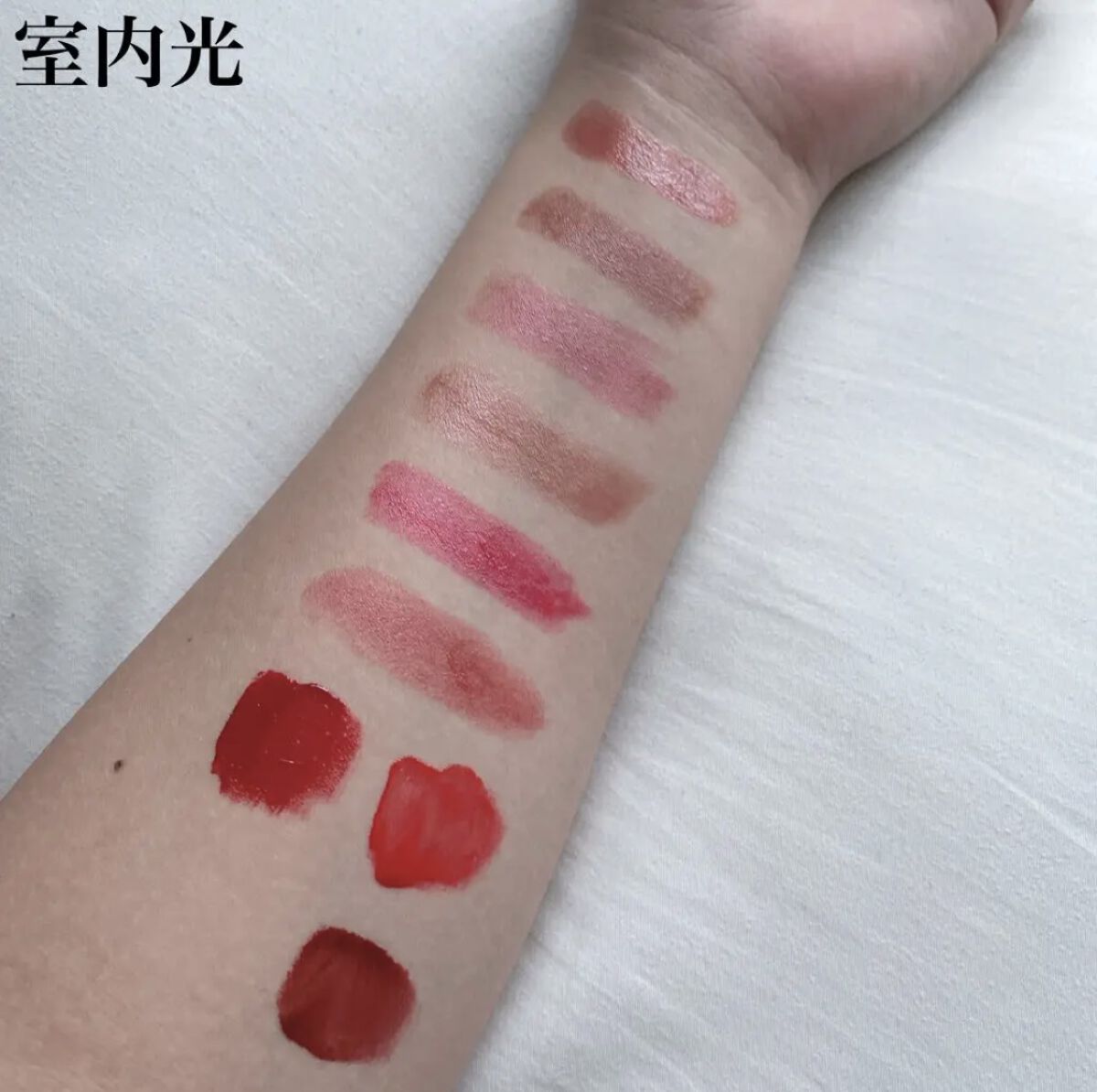 穏やかなローズピンク。華やかな透明感と血色感。ミニサイズで持ち歩きに便利◎ シアーな発色ながらも赤みが欲しい時に使いたい1本◎!リピ2本目◎ 無垢で愛らしいコーラルベージュ。プランプ効果(メイクアップ効果による)があり、ぷっくり&艶めく仕上がりが良き◎