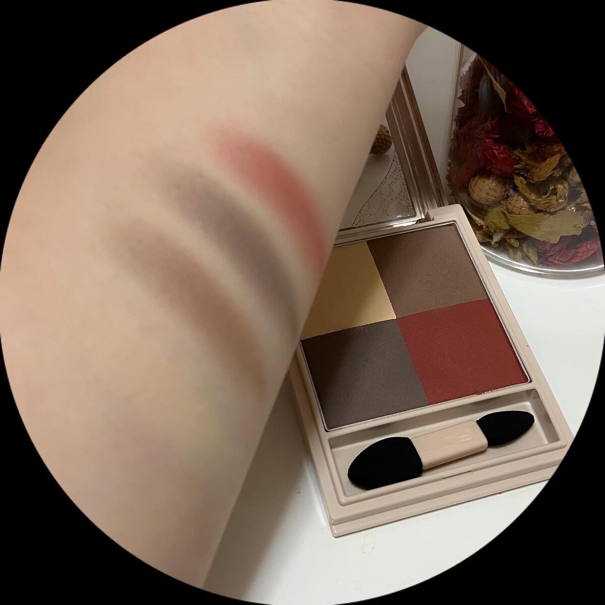 透け感のあるマットなカラーが美しく、グラデーションが作りやすいアイシャドウです🌟 粉感がなめらかでスルスルと軽いタッチで広がって肌に馴染み、マットカラーにありがちな乾燥した感じやキシキシ感がありません✨️ 毎日使いやすいダークブラウン系のカラーで、シックな大人っぽい目元に仕上がります✨️