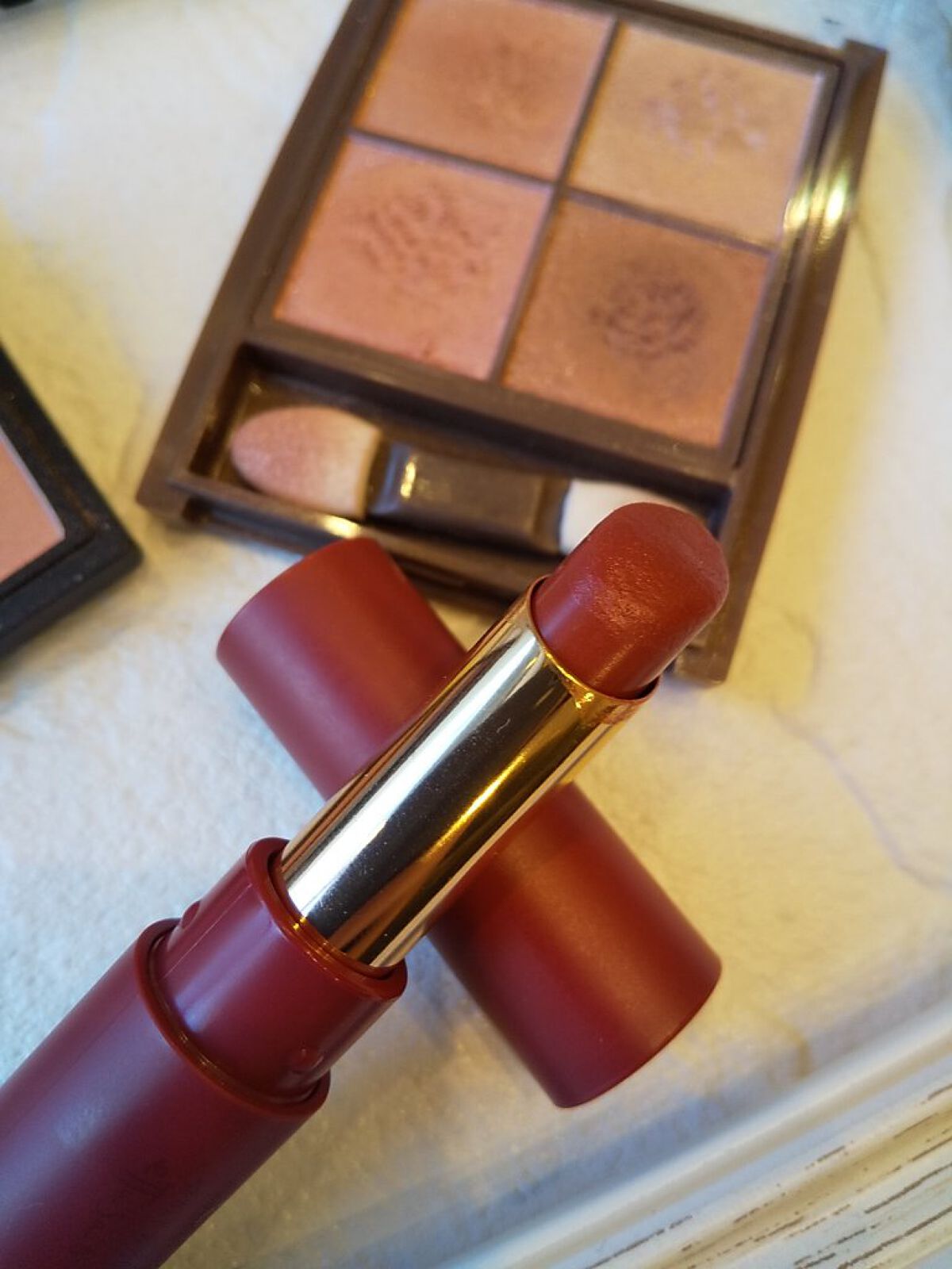 思ったより明るいレッド…可愛いけど私のメイクの色合いには馴染まないかも😨 パッケージから想像するよりもかなりショッキングピンクむしろ助かります とってもオトナな赤紫コレは秋とか冬とかに使いやすそうかも