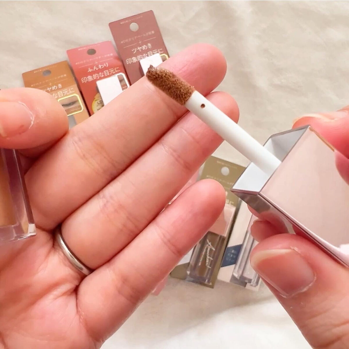 【アミュチア♡セレクトタッチアイシャドウ】..✔️クラブ#アミュチア▫️#セレクトタッチアイシャドウ..二重にたまりにくい高密着リキッドアイシャドウ🐰透け感があるので質感を楽しめます🤍🫧..▶︎パールタイプP001ナッティーラテ...抜け感ラ...