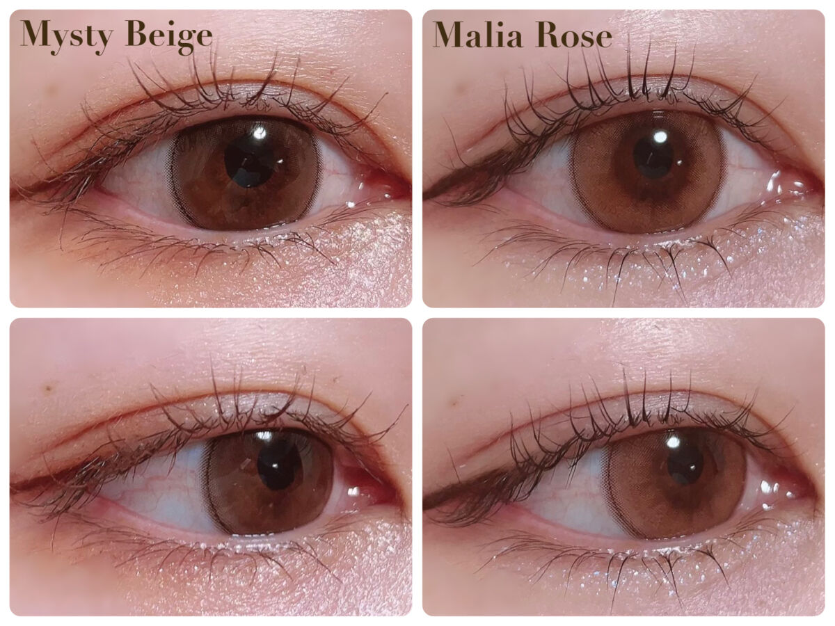 着色直径14.0mmが登場!新色2色🩷 モーヴグレージュ、マグノリアグレー ¥1793(税込)/10枚 ほんのりピンクを感じるグレージュカラー 明るめグレージュに1滴ピンクって感じ! 太フチで甘いのに色味と放射状デザインが大人っぽくて好みど真ん中❣️❣️