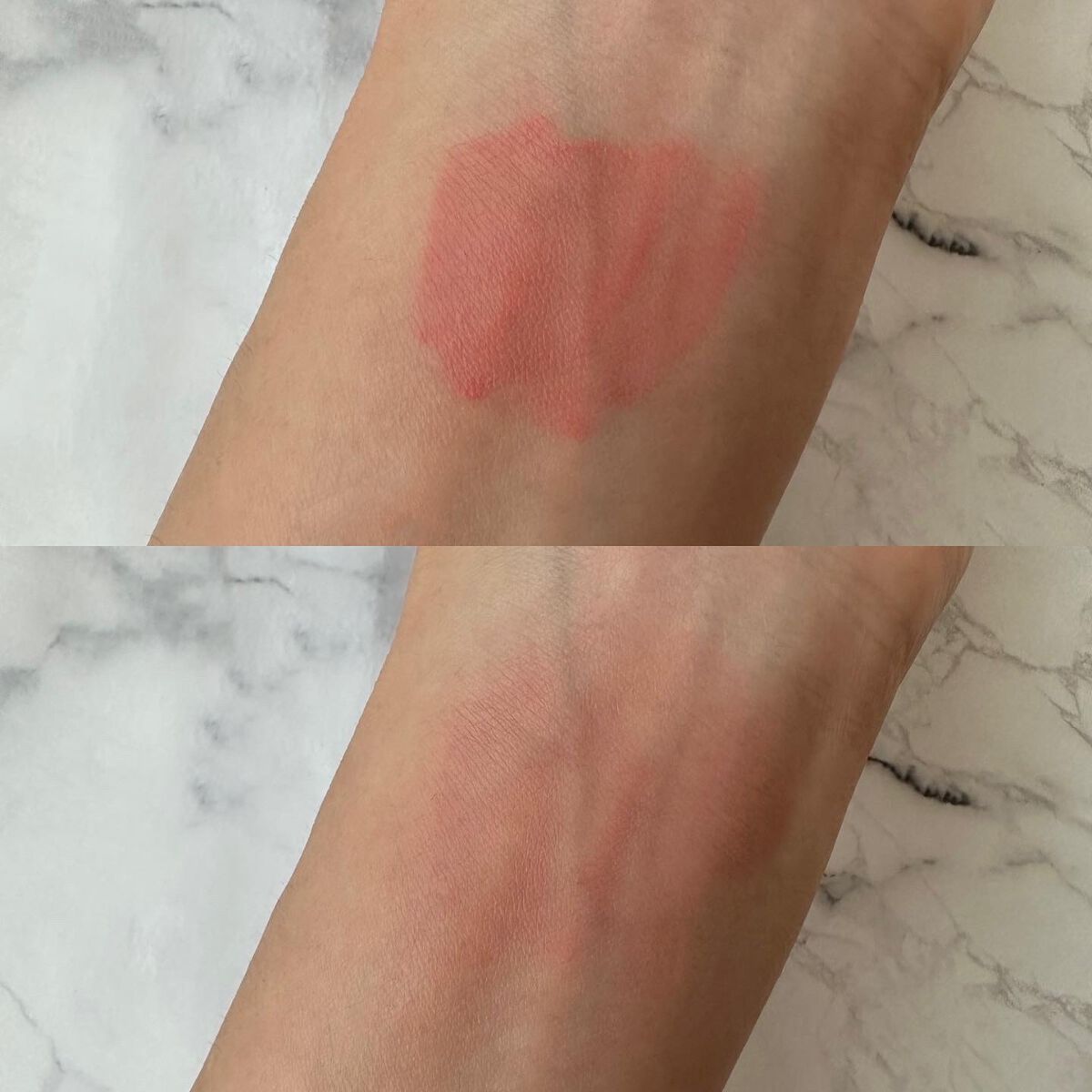 | お肌に乗せた瞬間は一瞬「濃くない!?」って思うかもしれないけど、馴染ませるとほんわり…マットでベタつかず、サラリな仕上がりです | 詳細を見る | ||