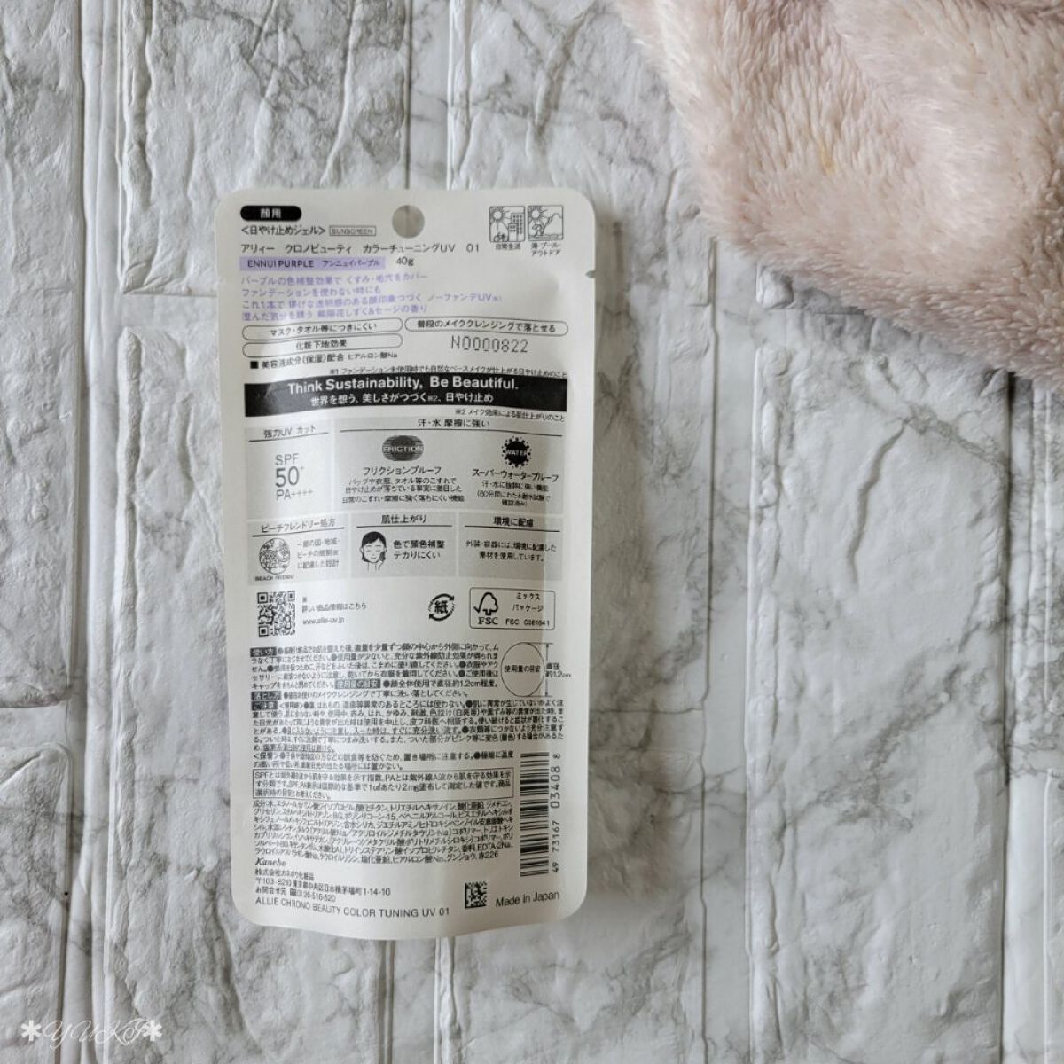 ALLIEクロノビューティカラーチューニングUV01アンニュイパープル税込2,332円パープルの色補正効果でくすみ・毛穴をカバーこれ1本で格上げされた透明感のある顔印象つづくノーファンデUV**ファンデーション未使用時でも自然なベースメイクが...