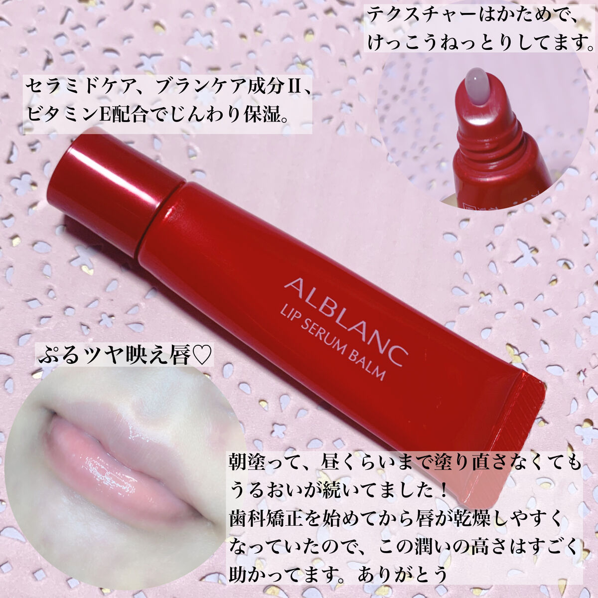 コスメラウンジの企画で、アルブランさんから商品を提供いただきました。リップセラムバーム〈RD〉をお試し💄✨濃厚なバーム状の美容液が、乾燥しやすい唇にぴたっと密着。なめらかにのびて、唇の凹凸にもフィットしてくれるので、うるおい感が続くように感じ...