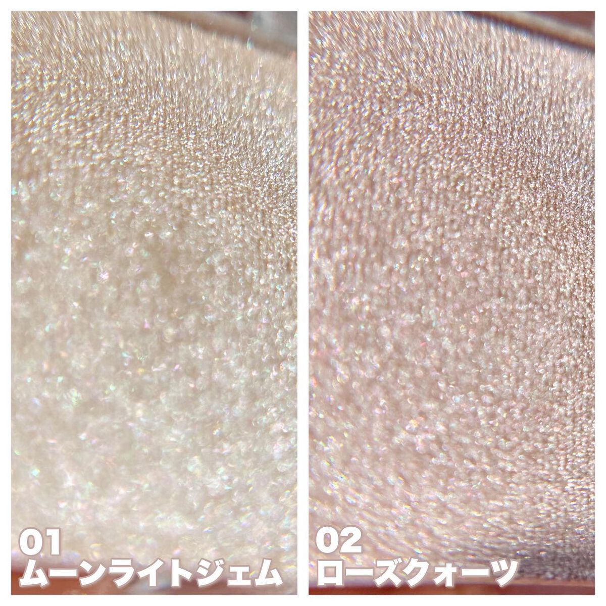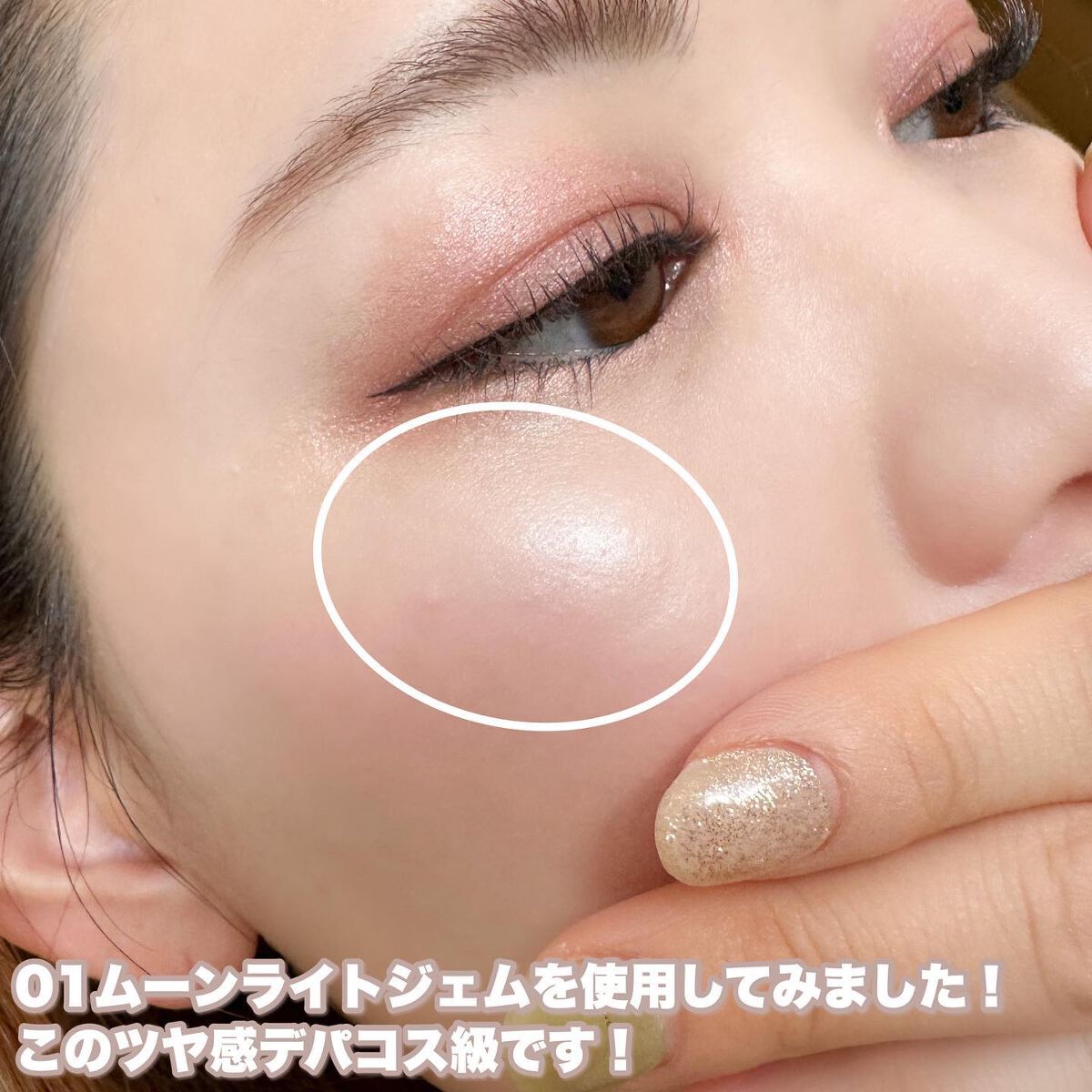 - むにゅっと生レアな質感♡ 繊細パールぎっしり配合のハイライター あふれ出すようなうるっとツヤで、透明感のある光沢肌に仕上がるハイライターです。 ”むにゅっ”とした質感で、お肌にぴたっと密着します。 塗るとサラッとした仕上がりで長時間ヨレにくい!