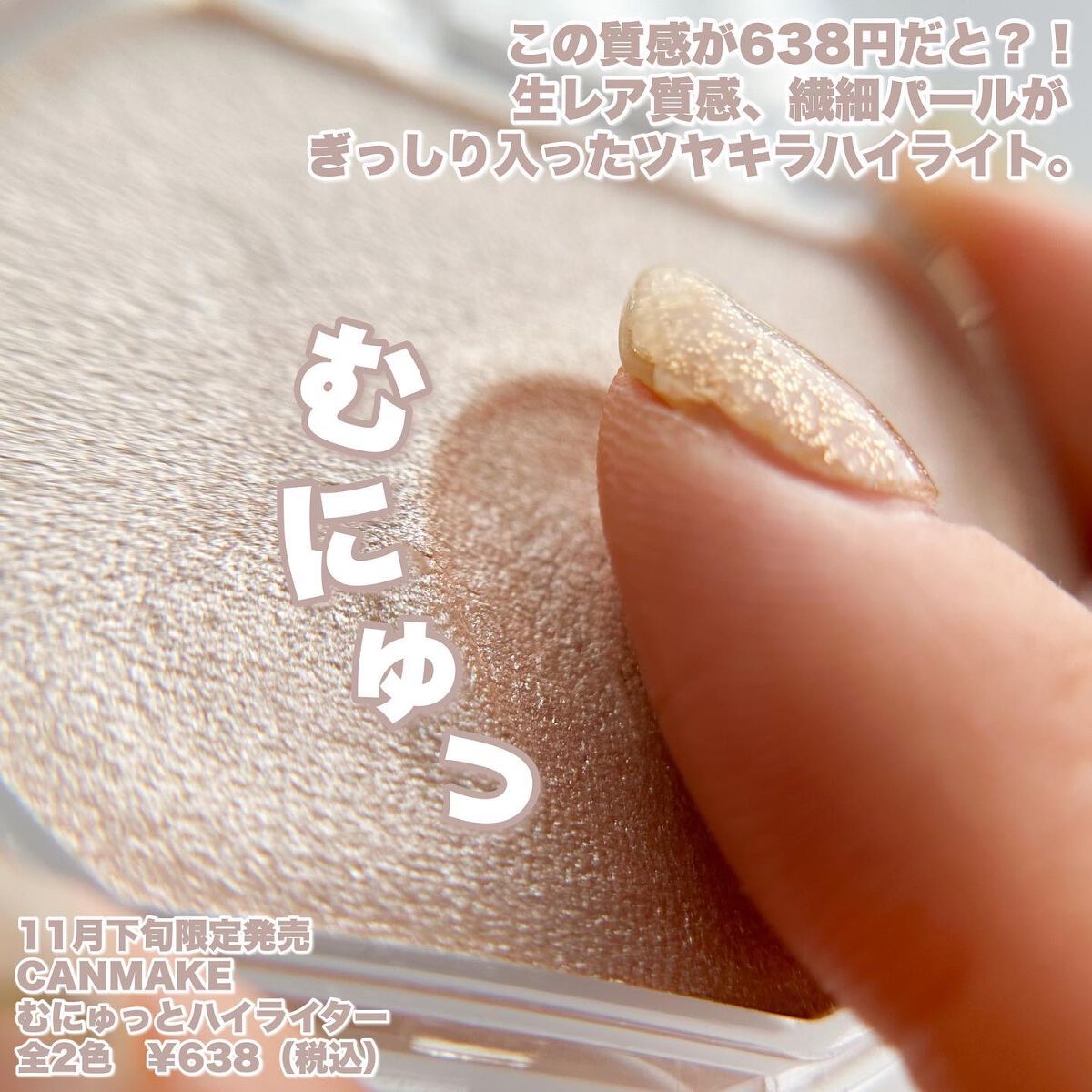 【全色比較レポ】キャンメイクのむにゅっとハイライター🌟キャンメイクむにゅっとハイライター・01ムーンライトジェム・02ローズクォーツ・03ウォームルチル・04ブルートパーズ各¥638(税込)●メリット・濡れツヤなのにベタつかない・サラッとして...