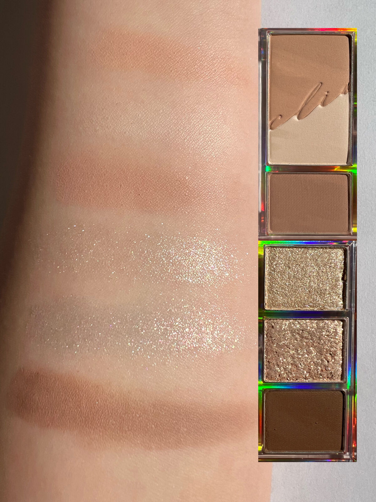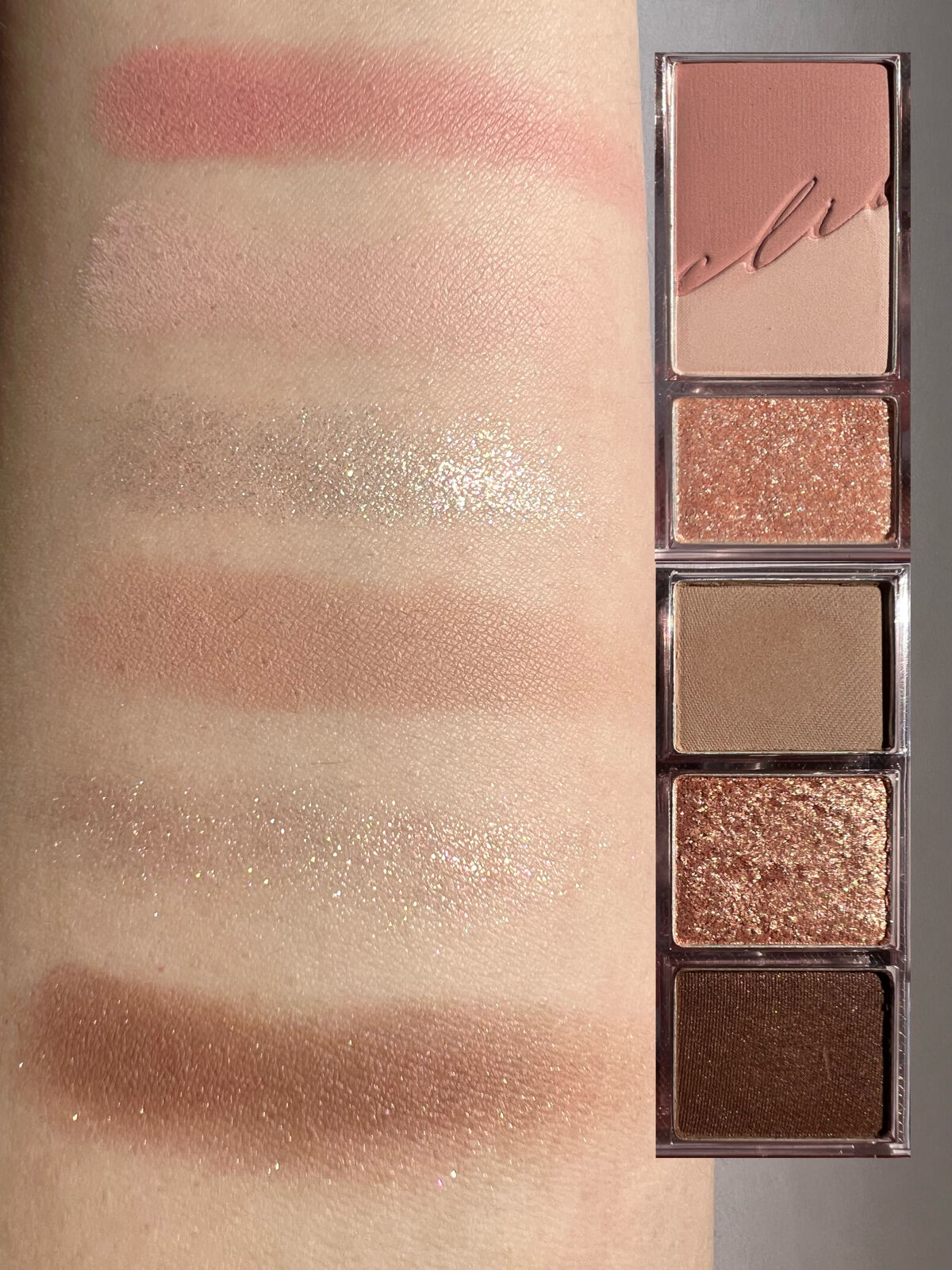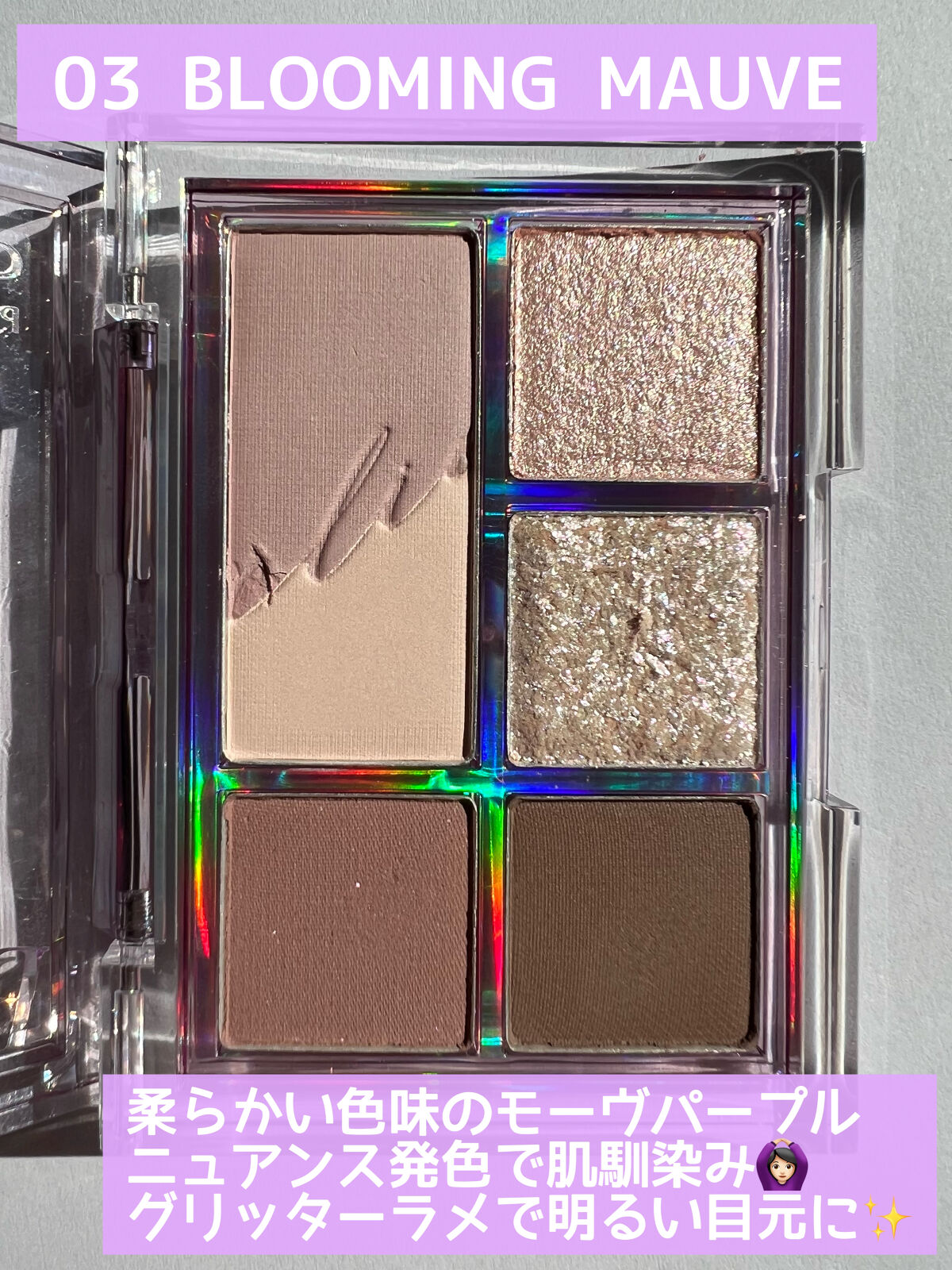 - 同系色陰影カラーと上品でクリアなグリッターの組み合わせの必要なカラーだけ詰め込んだミニアイパレット!