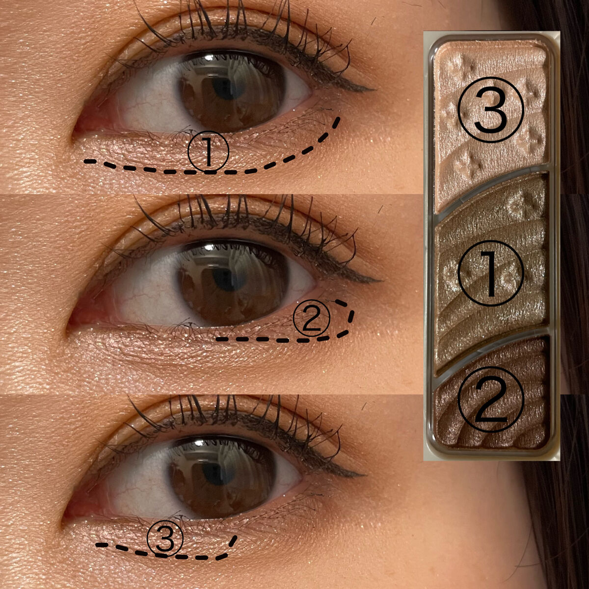 - 3色で簡単に明るく大きな目元に。 しっとり感触のアイシャドウ。 くすみを飛ばす明るさベース、ひとえ・奥二重の方でも幅広く塗れる肌なじみの良い中間色、 濃密高発色の締め色が目の輪郭を強調し大きな目元に。 微細パール配合でくすみを飛ばし、明るい目元へ。