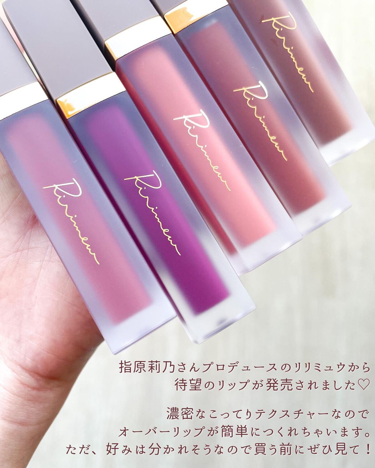 Ririmew リリミュウ バタールージュ <Color Variation> 01 ムースピンク 02 マーメイドプラム 03 アプリコットファッジ 04 ベアオレンジ #新作コスメ #リップ #指原莉乃 #ブルベ夏 #ブルベ冬 #イエベ春 #イエベ秋 #プチプラコスメ #コスメレビュー