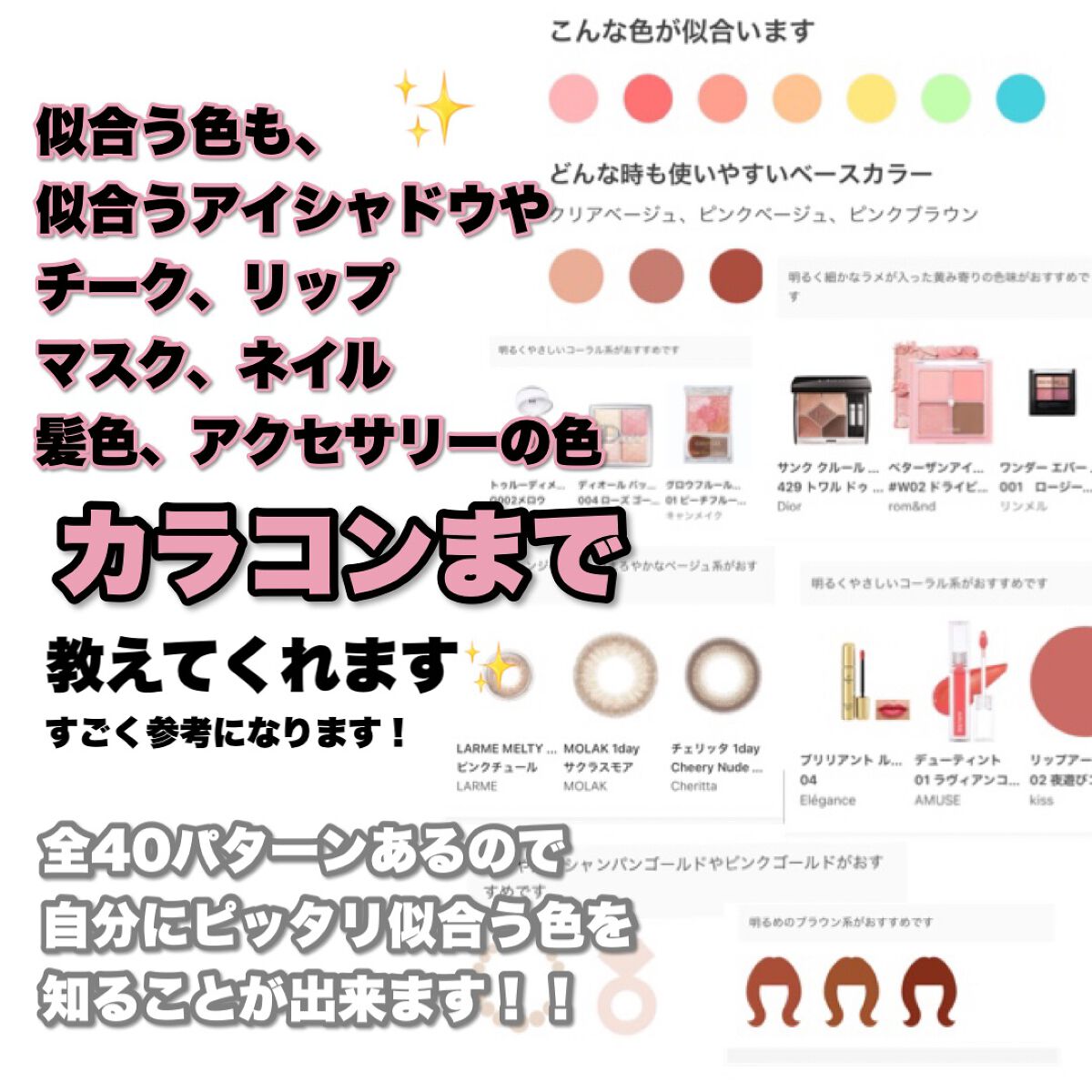 まず私はプロ診断を受けたことがあります! この診断での結果は、1stイエベ春 2ndブルベ夏でした! そしてそこから・自分に似合う色(ベースカラーも)・似合うアイシャドウ・似合うチーク・似合うリップ・似合うネイル・似合うカラコン・似合うマスクの色・似合うアクセサリーの色・似合う髪色を教えてくれます!!!🎶