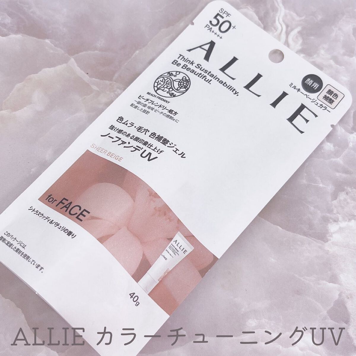 - 世界を想う 美しさつづく*1 日やけ止め おでかけも、マスクを外す機会も増える毎日に。 一部の国・地域・ビーチの規制に配慮した設計のビーチフレンドリー処方。 これ 1 本で、UV カット&顔色補整効果でクマ・くすみ・色ムラまでカバー! テカりにくく、くずれにくいノーファンデ UV*2 【ENNUI PURPLE】 くすみや毛穴をカバー 儚げな透明感のある顔印象続く 澄んだ気分を誘う 紫陽花しずく&セージの香り 【SUNNY APRICOT】 クマや毛穴をカバー いきいきとした血色感のある顔印象つづく 思わず出かけたくなる アプリコット&金木犀の香り 【SHERR BEIGE】 色ムラや毛穴をカバー 均一で抜け感のある顔印象つづく 自然で飾らない シトラスウッディ&パチュリの香り ●一部の国・地域・ビーチの規制に配慮した設計の「ビーチフレンドリー処方」 ●SPF50+・PA++++ ●汗・水 こすれに強く落ちにくい フリクションプルーフ・スーパーウォータープルーフ ●ベタつきにくい感触がつづく ●テカりにくくキレイな肌仕上がりがつづく ●環境に配慮した素材を使用したパッケージ採用 ●美容液成分(保湿)ヒアルロン酸Na配合 ●顔用 ●普段のメイククレンジングで落とせる ●マスク・タオル等につきにくい ●化粧下地効果 *1 スキンケア効果またはメイクアップ効果による肌仕上がりのこと *2 ファンデーション未使用時でも、自然なベースメイクが仕上がる日やけ止めのこと *3 チリ・ほこり・PM2.5・花粉等すべての微粒子汚れの付着を防ぐわけではありません 01:ENNUI PURPLE パープル 02:SUNNY APRICOT アプリコットピンク 03:SHEER BEIGE ミルキーベージュ