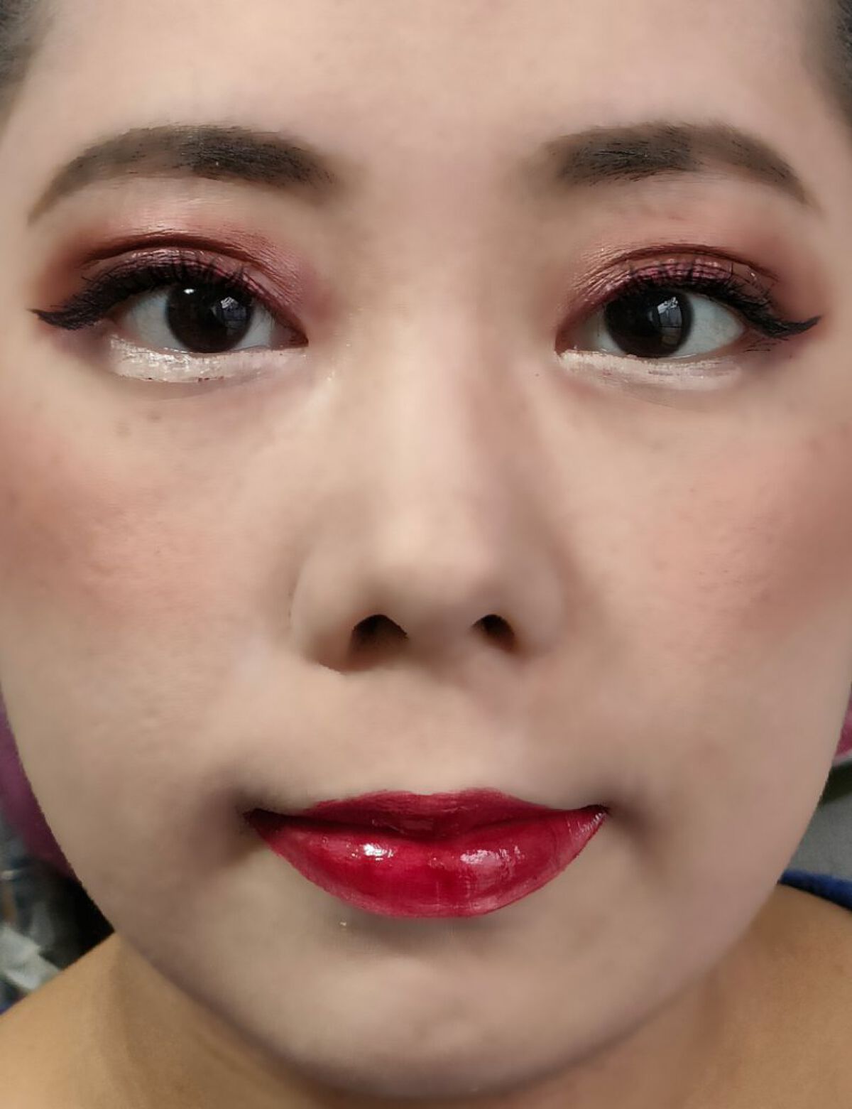 アイシャドウパレットは、URGLAM UR GLAMBLOOMING EYE COLOR PALETTE 02を、使用しました。 マスカラは、MAYBELLINE NEW YORK コロッサルボリュームエクスプレスを、まつ毛全体にまんべんなく塗ります。 リップは、wet 'n' wild MegaLast Lip Colorを、唇全体にまんべんなく塗ります。