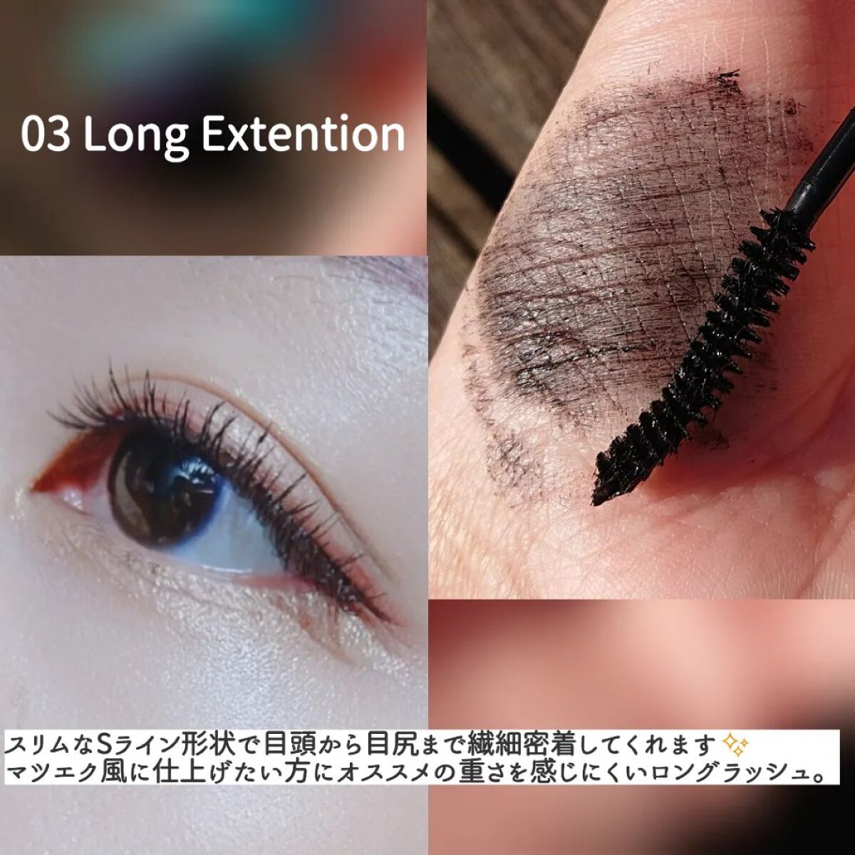 ボリュームタイプとロングタイプの存在感セット! ぱっちりとした目元に仕上げたい方におすすめのセットになっています✨ U字型ツイストブラシでしっかりボリュームアップできる エクステのようなしっかりとした長さが出るファイバーエクステンションでダマになることなくロング&カールの仕上がりになります
