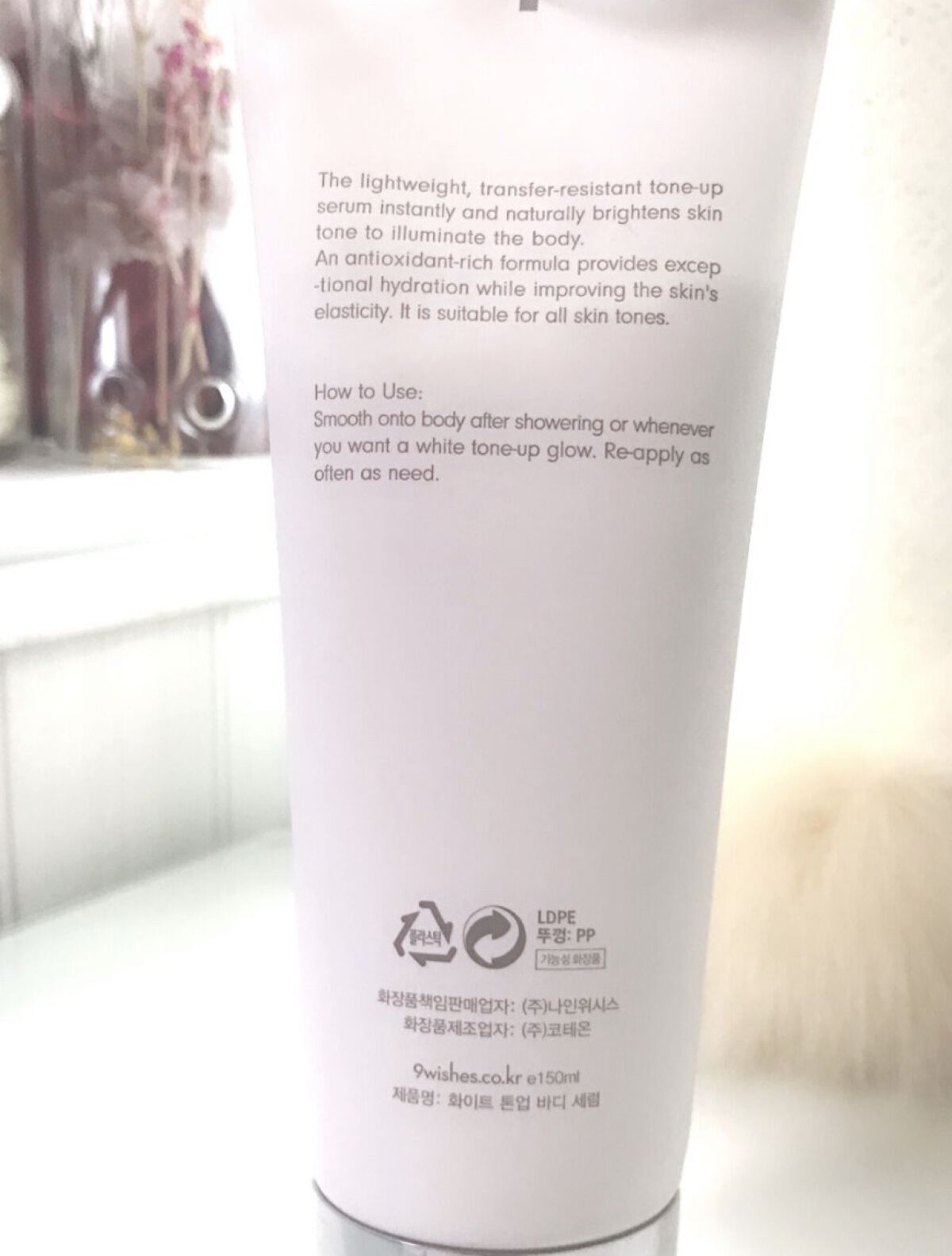 \塗るだけで素肌の美しさを底上げ/9Wishesホワイトトーンアップボディセラム◼︎販売価格:5,400円(税込)→Qoo10にて2,743円🛍️(49%OFF)◼︎内容量:150mlSPF21@bloomkarejp様よりいただきました𓂃🕊...
