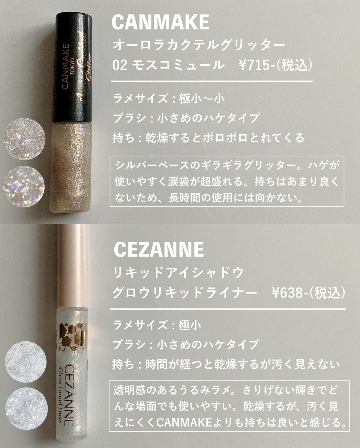 | リキッドアイシャドウランキング第2位 | 中に入っている偏光オーロララメの大きさがまた絶妙で、そのまま塗って使っても良いんだけど瞼にラメを乗せる感じで使ってもキラキラで可愛いよ | 詳細を見る | |