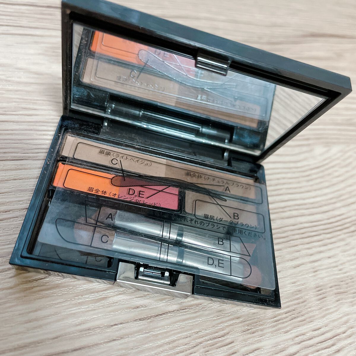 - 一人ひとりの髪の色やなりたいイメージに合わせて、自然で立体感ある眉が描けるアイブロウパレット。計算された5色の組み合わせで、プロが描いたような美しい眉に仕上がります。 毛髪に合わせて、赤とオレンジのニュアンスカラーを配置。さらに、眉全体の形、眉尻の形、眉頭の陰影、眉毛の色、それぞれに合わせたパウダーとブラシを採用しました。オイルでコーティングしたパウダーを配合し、くずれにくくする工夫も。