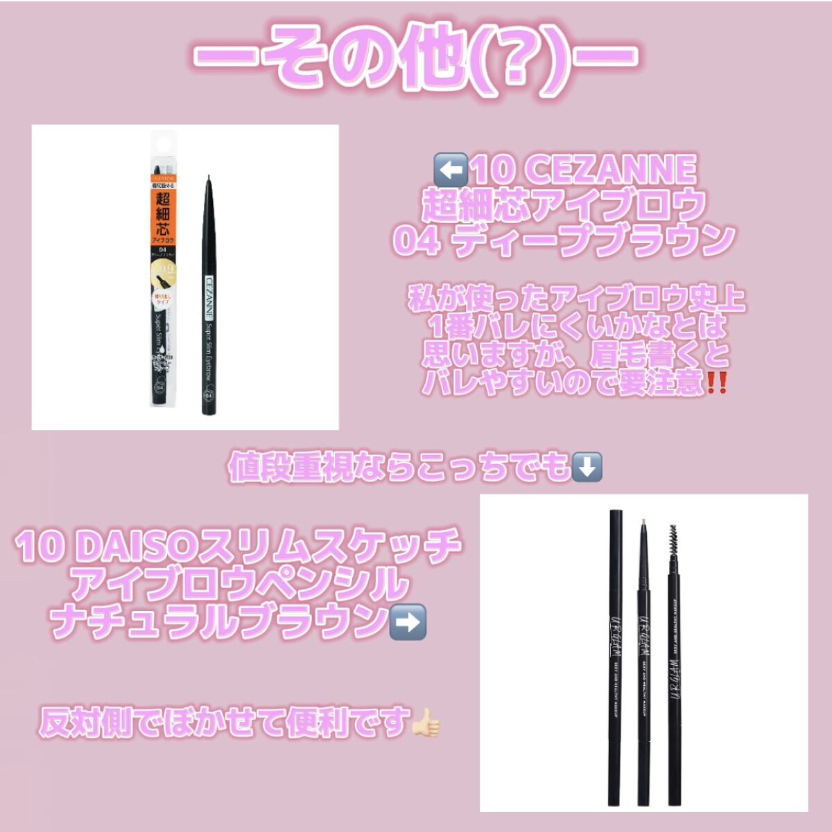 | アイブロウランキング第81位 | とても安いし使いやすかったです✨色味も濃すぎず薄過ぎずで程よい硬さなので描きやすいです | 詳細を見る |