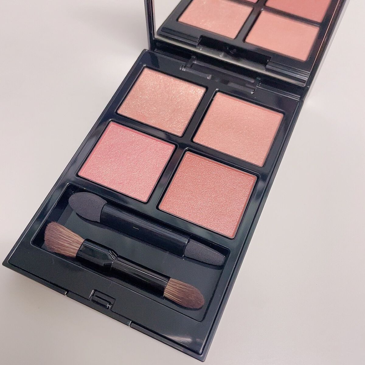 儚げカラーが可愛いすぎるピンクブラウンパレット🎨 くすみ感ありそうに見えて、くすみはほぼなくどう塗っても可愛い目元が完成する天才的配色!! 忙しい朝のつよおおおおい味方💪 そしてばたつく朝の相棒🫶🫶なくてはならないビックLove🫶 ささっと塗って仕上げたとは誰も思わない完全無欠eye🥰 絶対リピートすると決めてるアイシャドウ🥳🥳