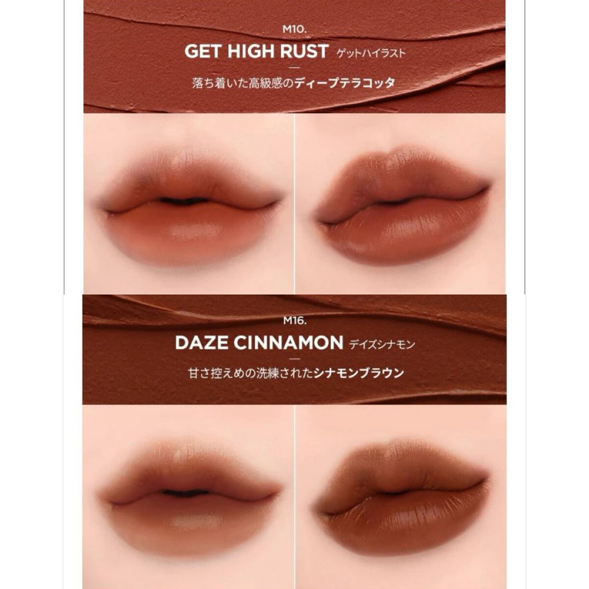 上がM10下がM16です! どっちかと言えばM10が赤みブラウンでM16がオレンジブラウンかな〜と思います! イエベブラウン推しにはたまらない2色でした🥺 このあとティッシュでふき取っても色が結構残っててびっくり😳….ᐟ.ᐟ.ᐟ 匂いはベリー系で私は好きでした😚 メガ割で私は2本で1592円で買いました😌 気になった人は買ってみてください😻