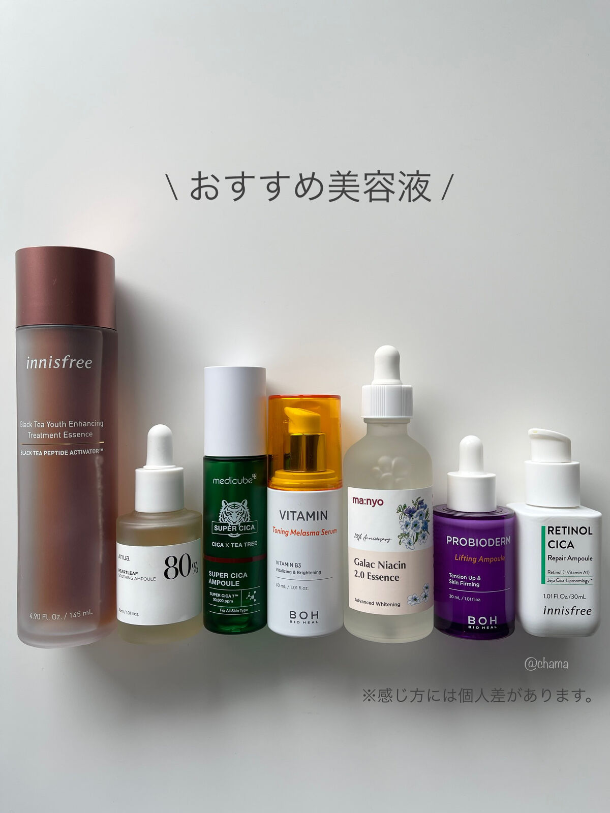 Anuaだけかも♪ 初期のものはトロみあるもの多いけどベタ付かなくて使いやすい😁👍 ドクダミ・・・肌荒れ予防 シラカバ・・・インナードライ ビタミンC・・・美白 桃・・・美白 ピンク・・・美白強化 韓国コスメ・韓国スキンケア で肌悩みを克服中♡