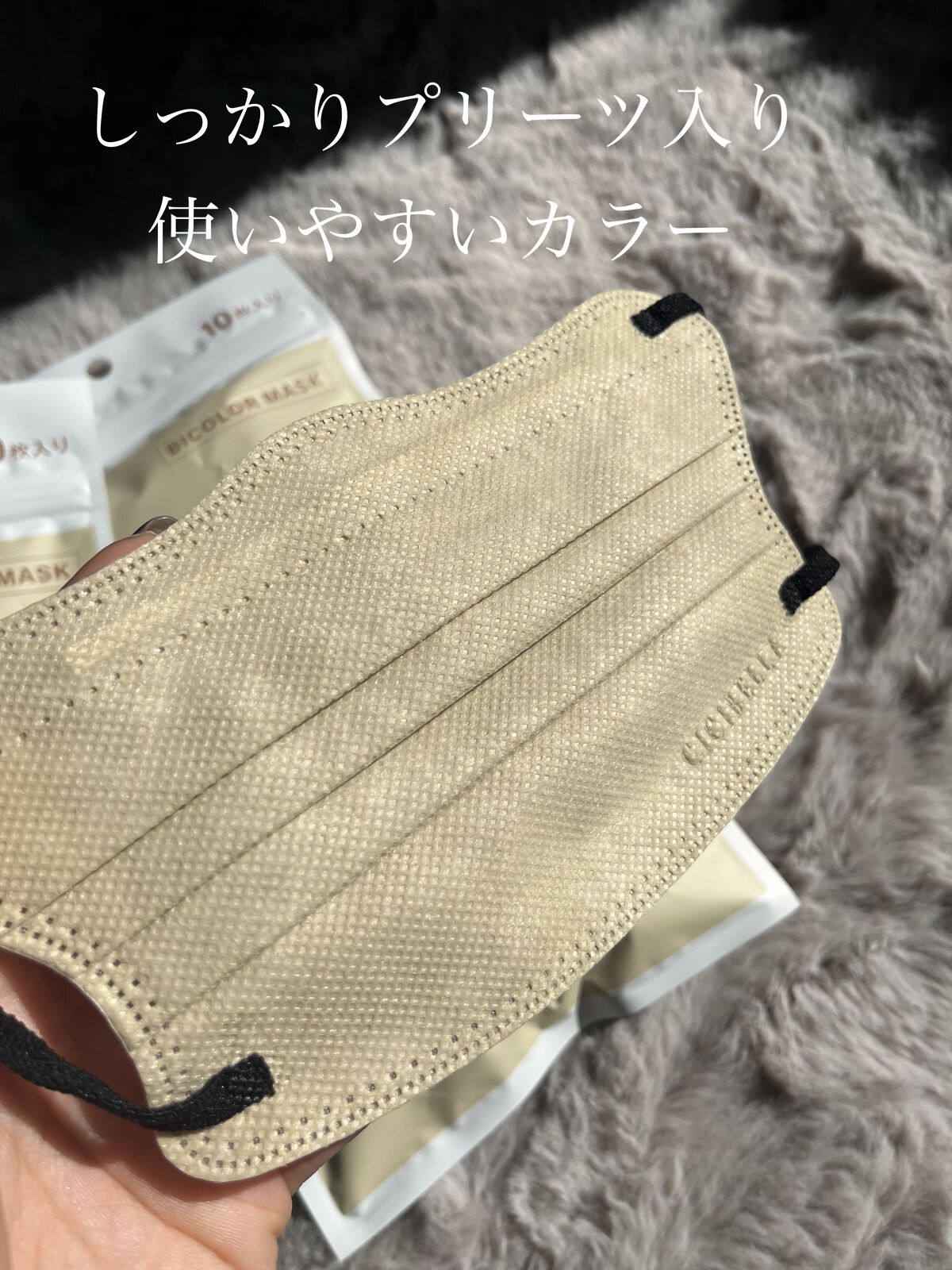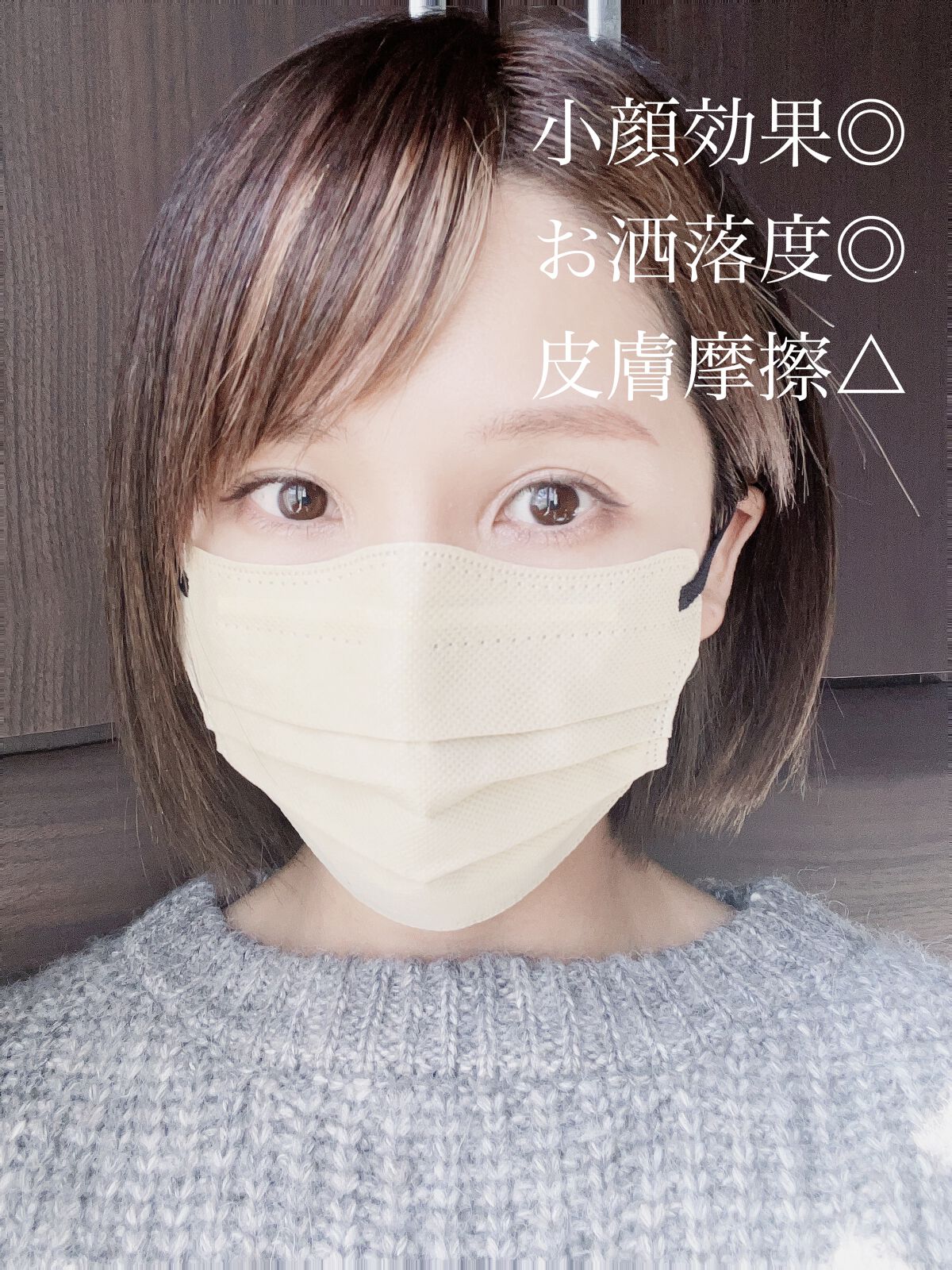 可愛くて小顔に見えるマスクです♪ マスクの形が独特で、普通のマスクは顔の形に沿う時にダボつきのようなものができるけどこれはできず、すごく滑らかにフィットする✨ ダボつきがない分、ぐっと小顔に見える この形状とプリーツがすごく可愛く見せてくれる💖 耳は全然痛くないし、全体的なサイズ感も良いけど、ぎゅっと鼻が押される感じがあってメイク崩れが怖くて使えない…