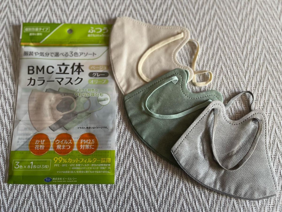 その日の気分や服装で選べる3色アソートマスクの「BMCカラーマスク」と「BMC立体カラーマスク」を使ってみました♪【BMCカラーマスク】ベージュ・グレー・オリーブの3色アソートになっています高性能フィルターで、ウイルス飛まつ・花粉・PM2.5...
