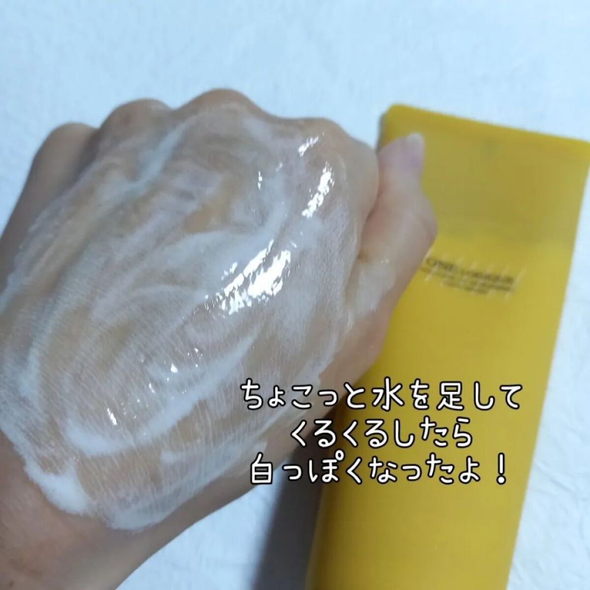 ONELOGIQUE ピールケアVCスクラビングフェイスウォッシュ。柑橘系の香りがします。テクスチャーは濃い重めのクリームのようなのですが肌にするすると伸ばしやすいです。掌に出したときは硬い印象でしたが肌に伸ばしやすくて使いやすいと思いました...